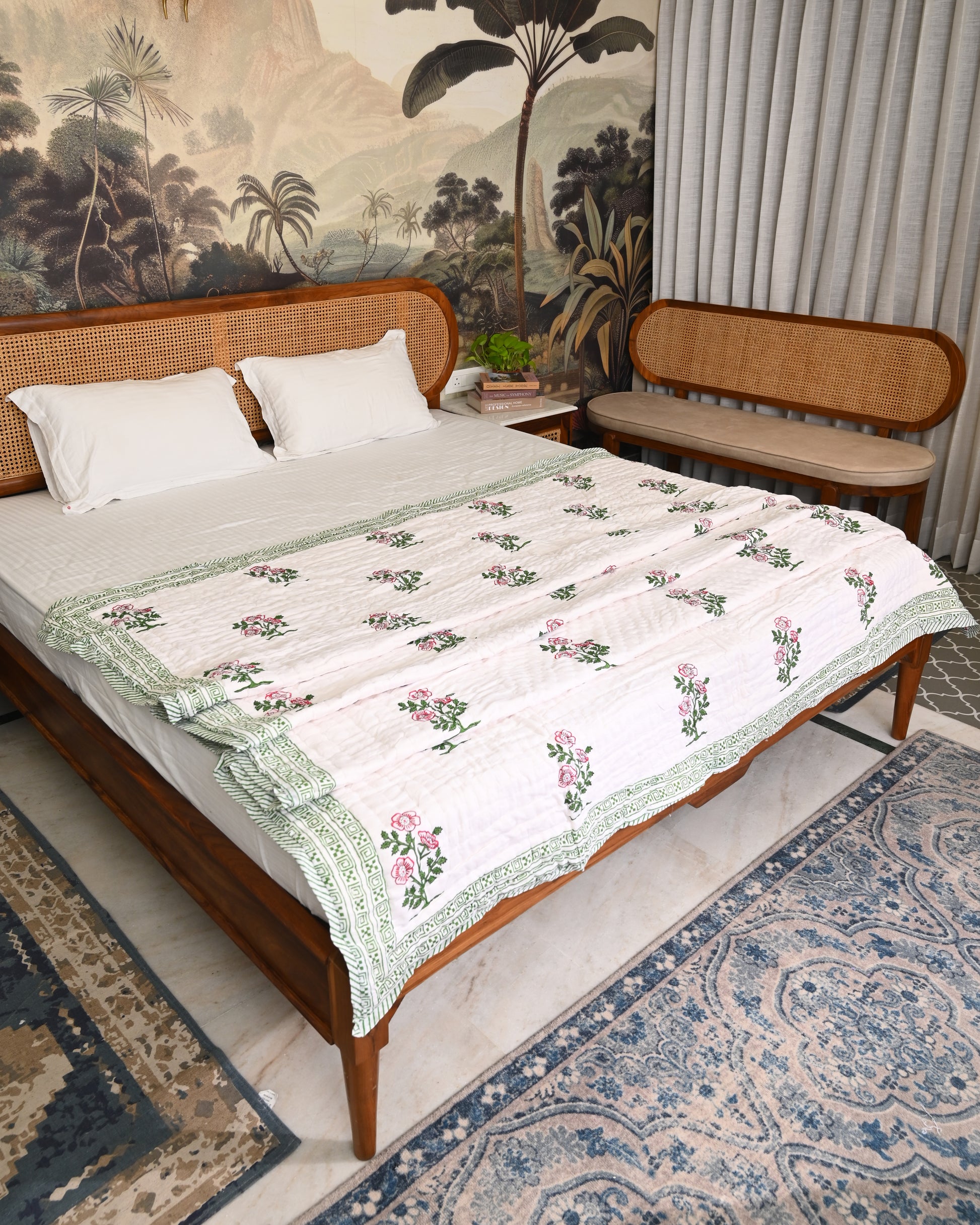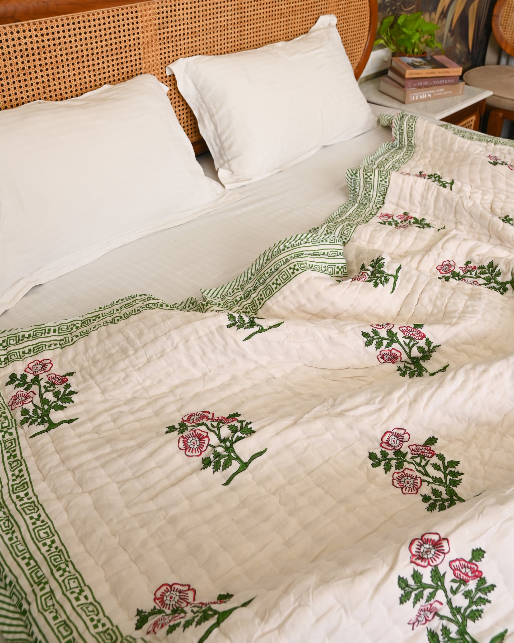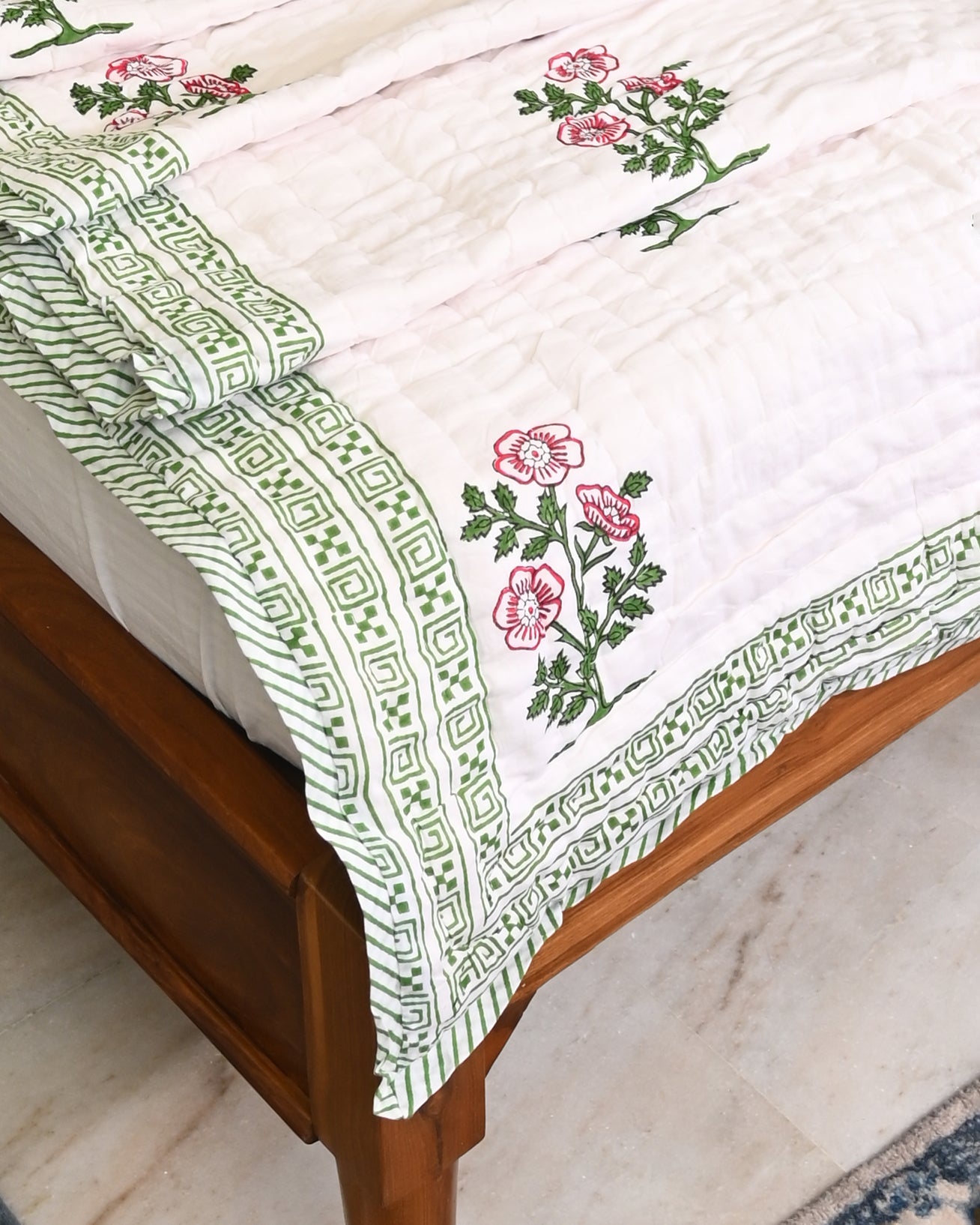 Jasmine Hand Block Printed Mulmul Cotton Quilt