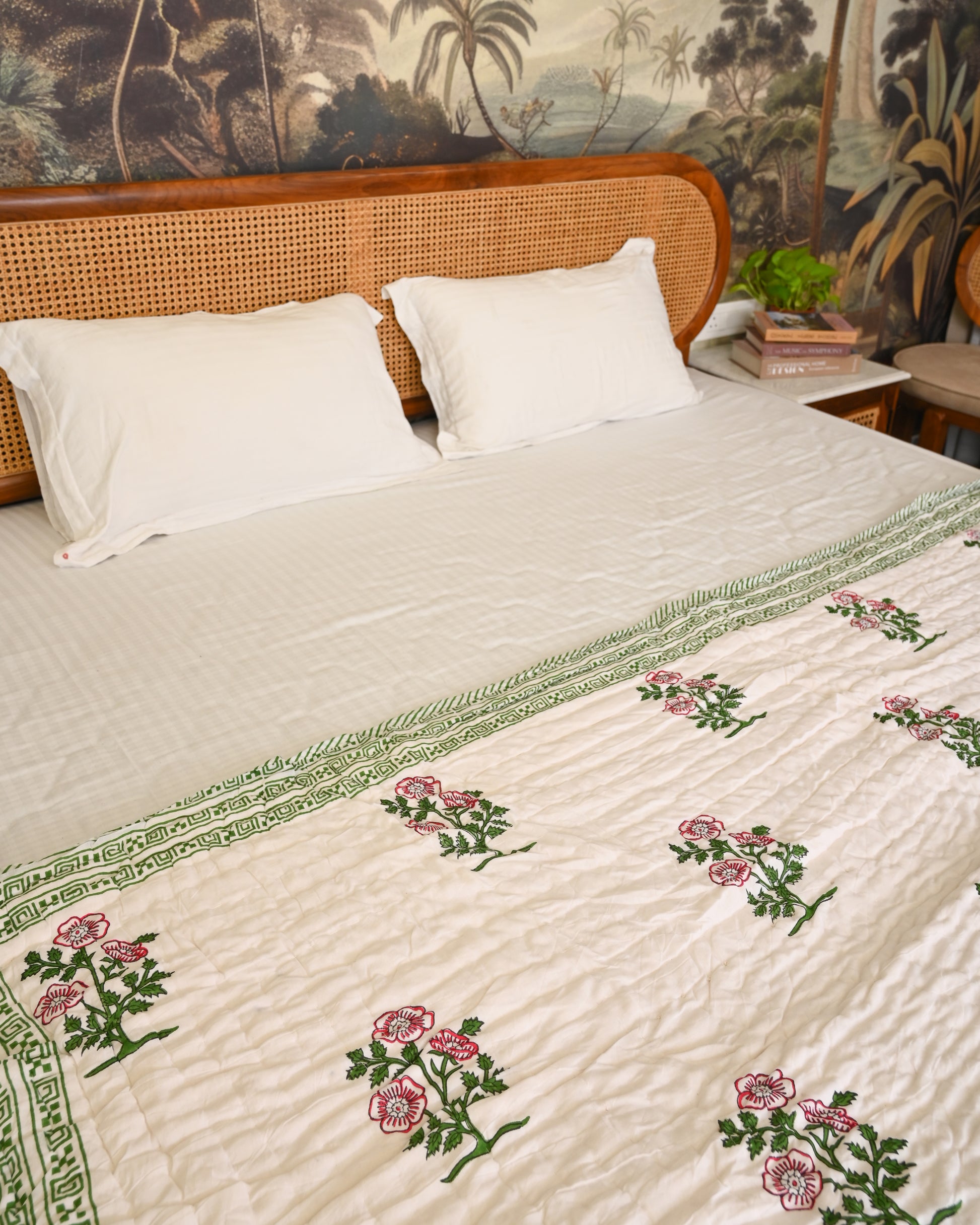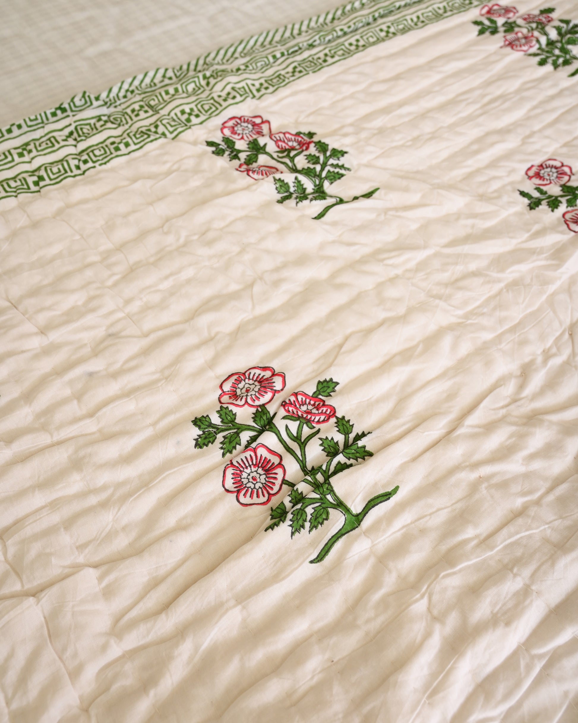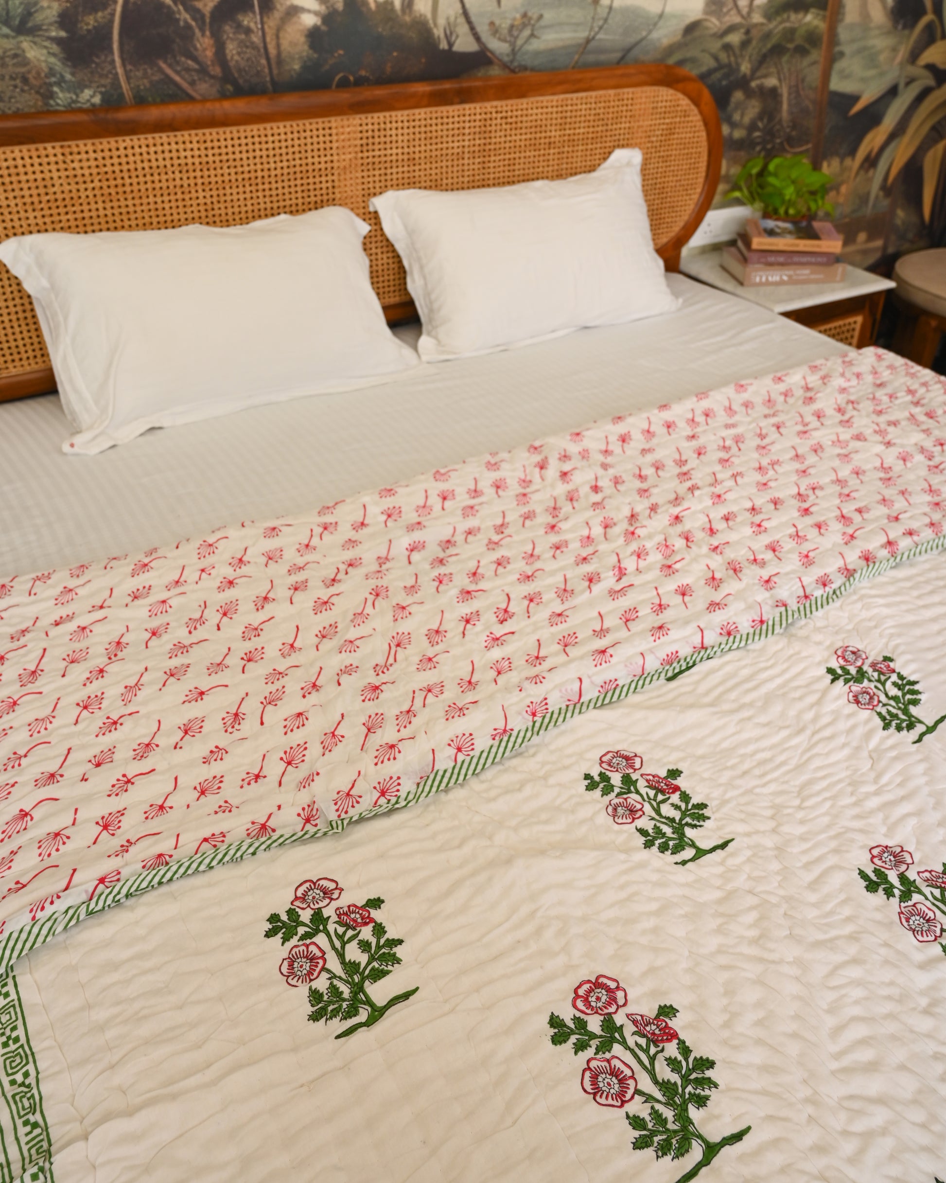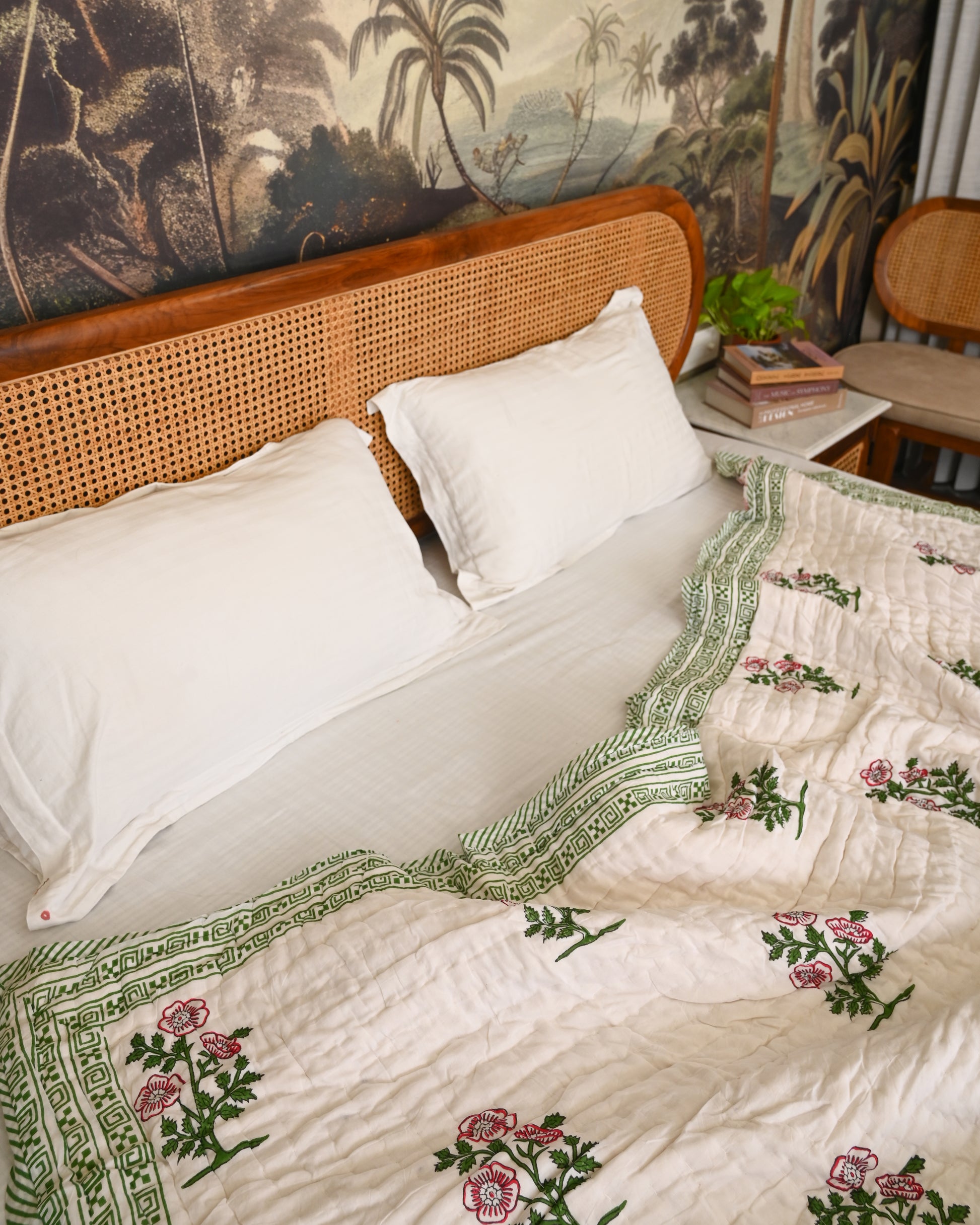 Jasmine Hand Block Printed Mulmul Cotton Quilt