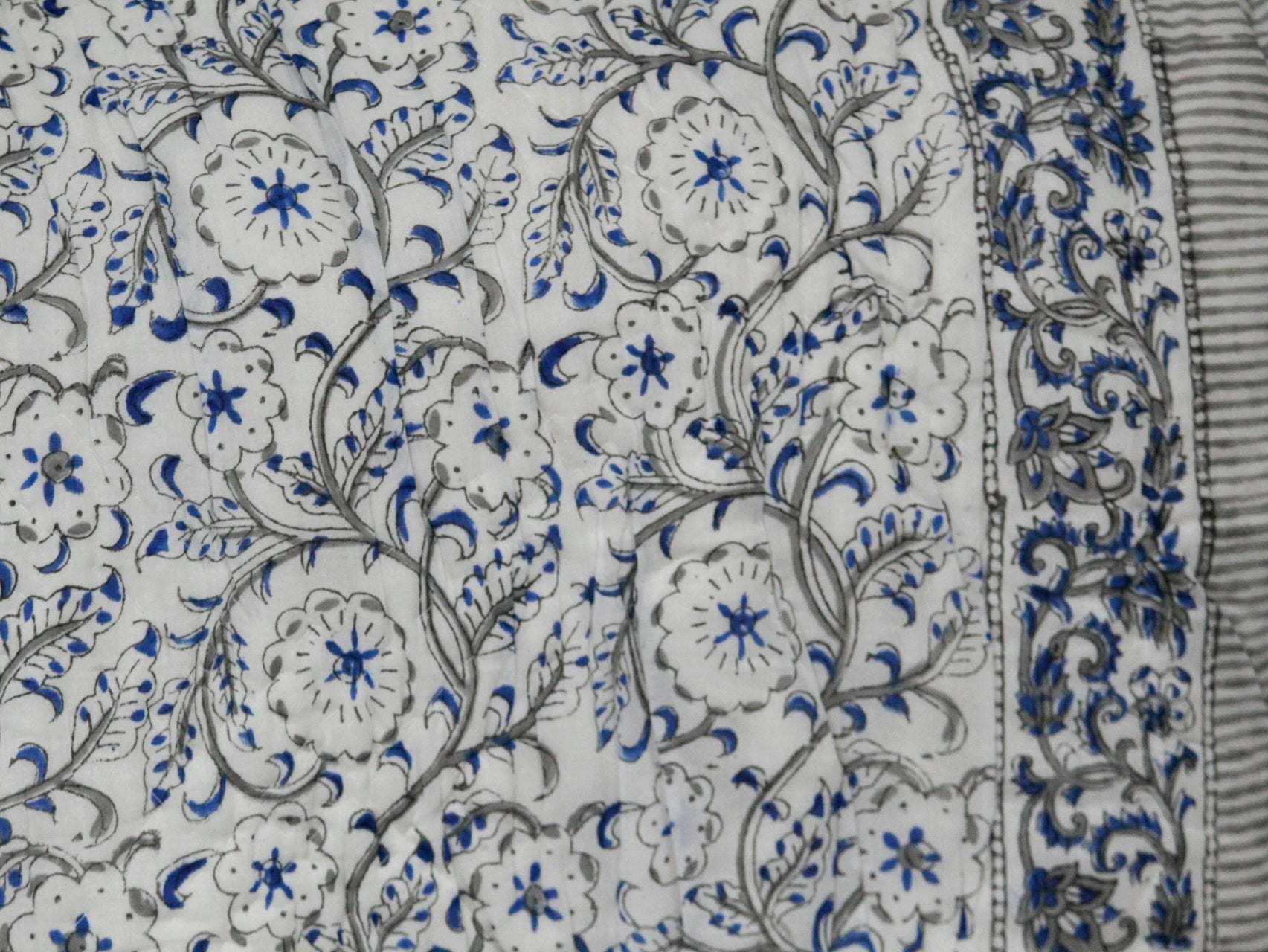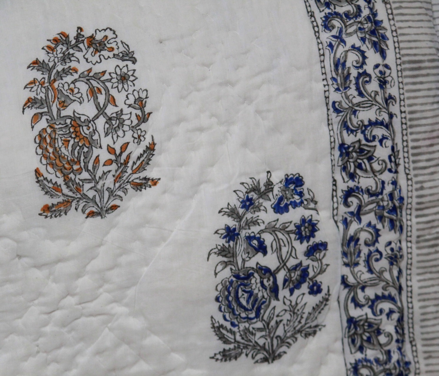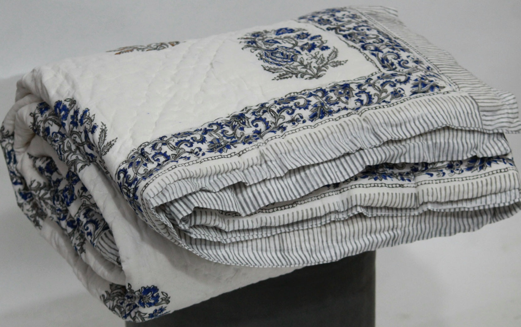 Each quilt is carefully adorned with detailed hand block prints, bringing timeless character and refined beauty to your bedroom. Reversible patterns add versatility and style, making it a perfect centerpiece for your bedding collection.