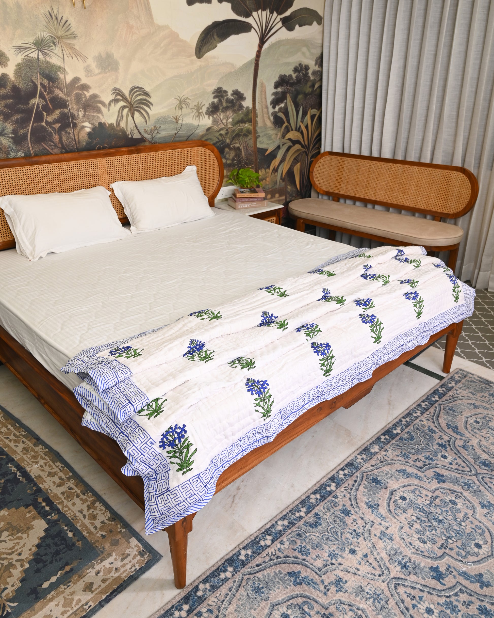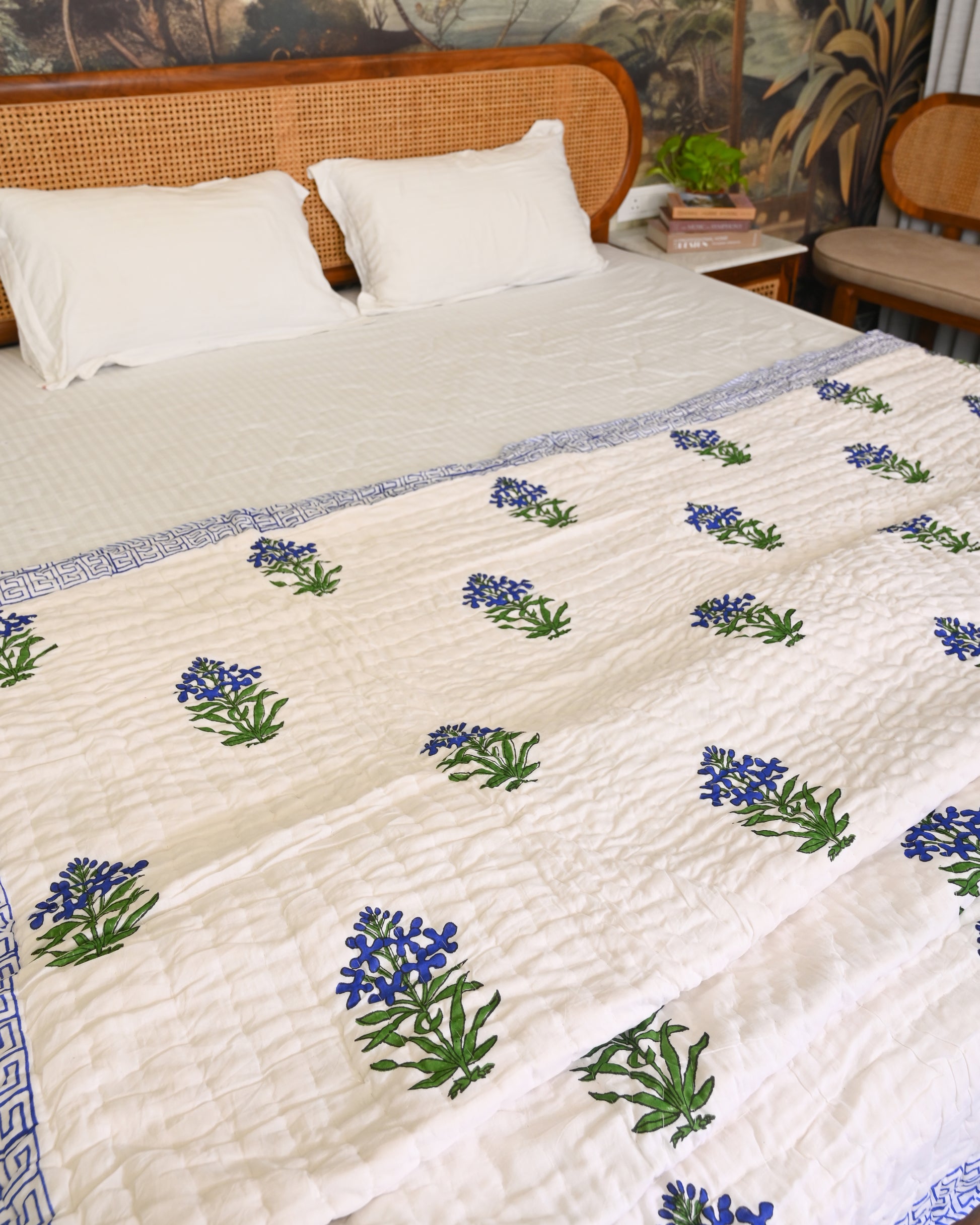 Jasmine Hand Block Printed Mulmul Cotton Quilt