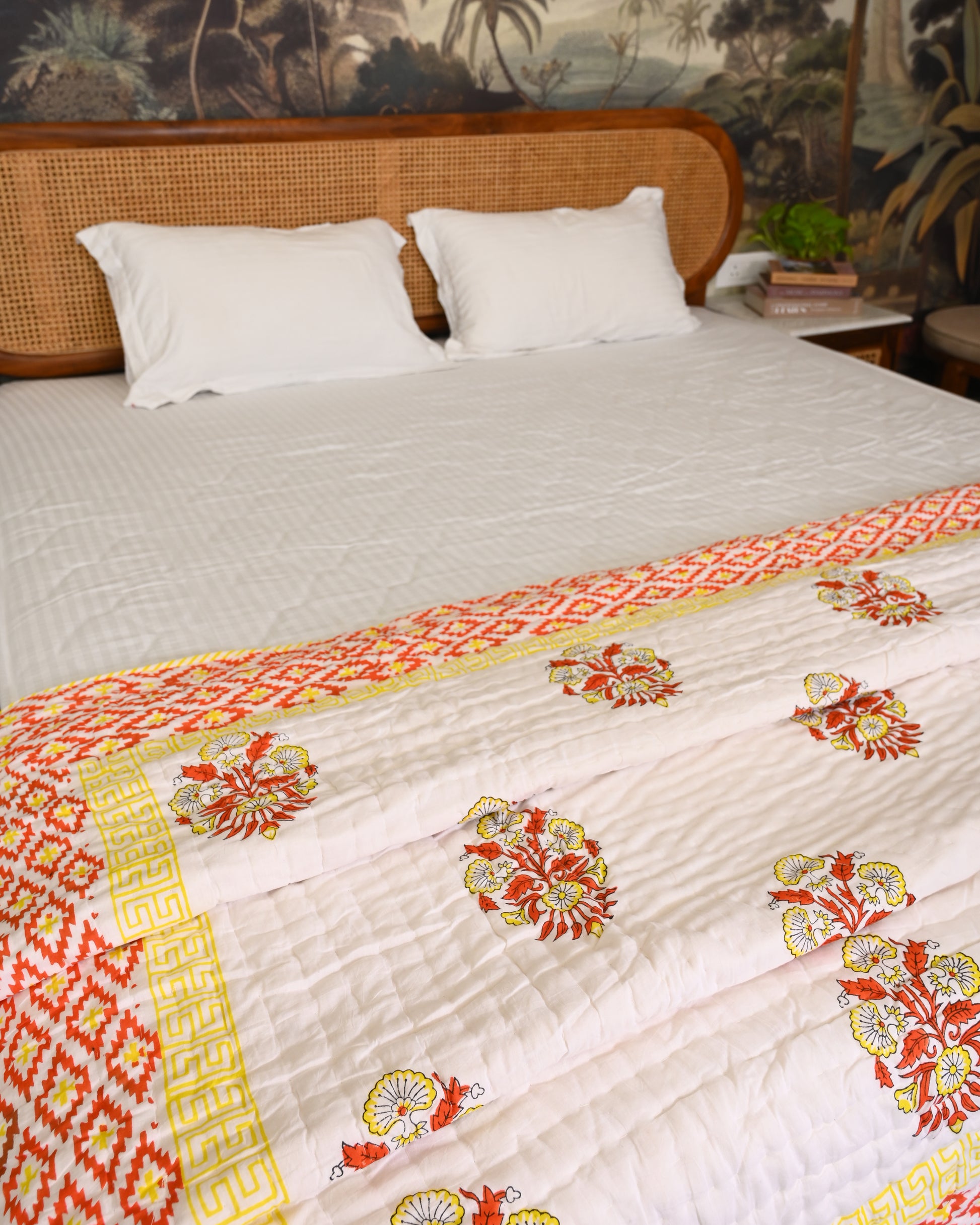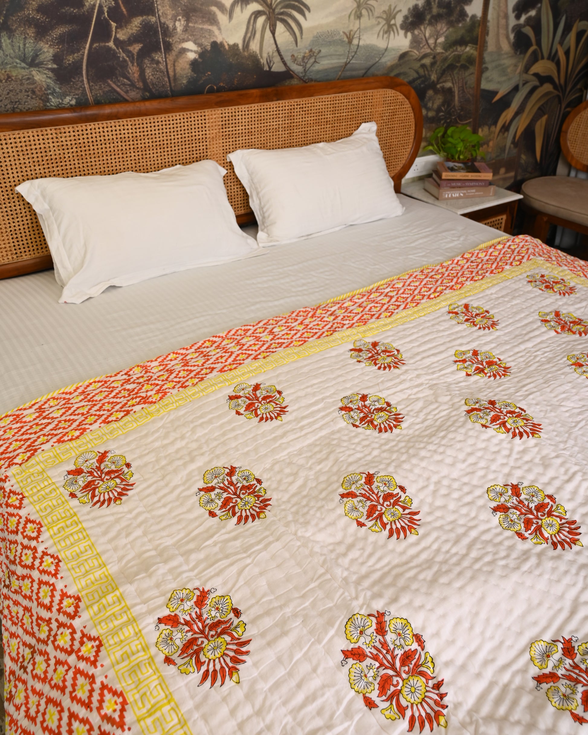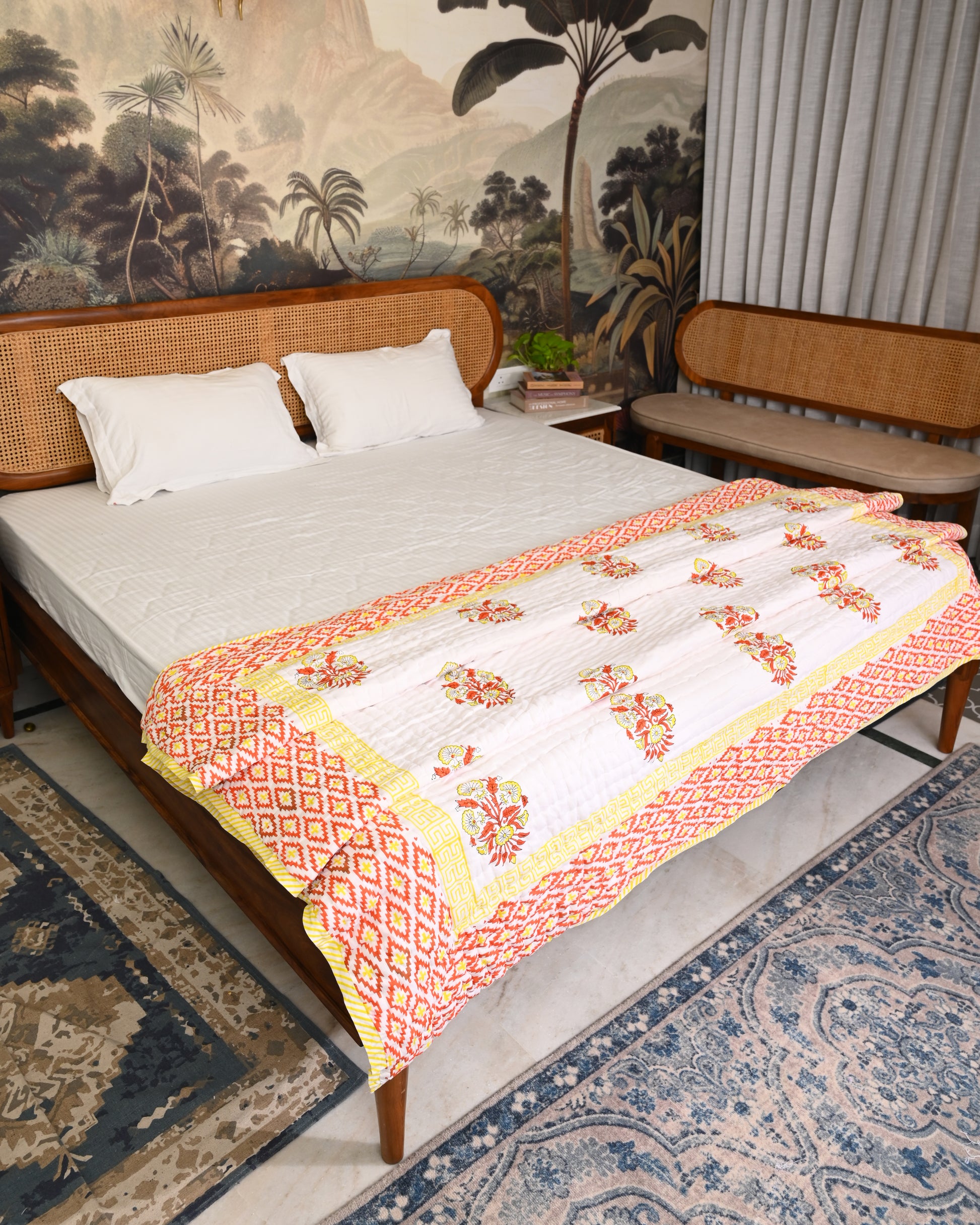 Jasmine Hand Block Printed Mulmul Cotton Quilt