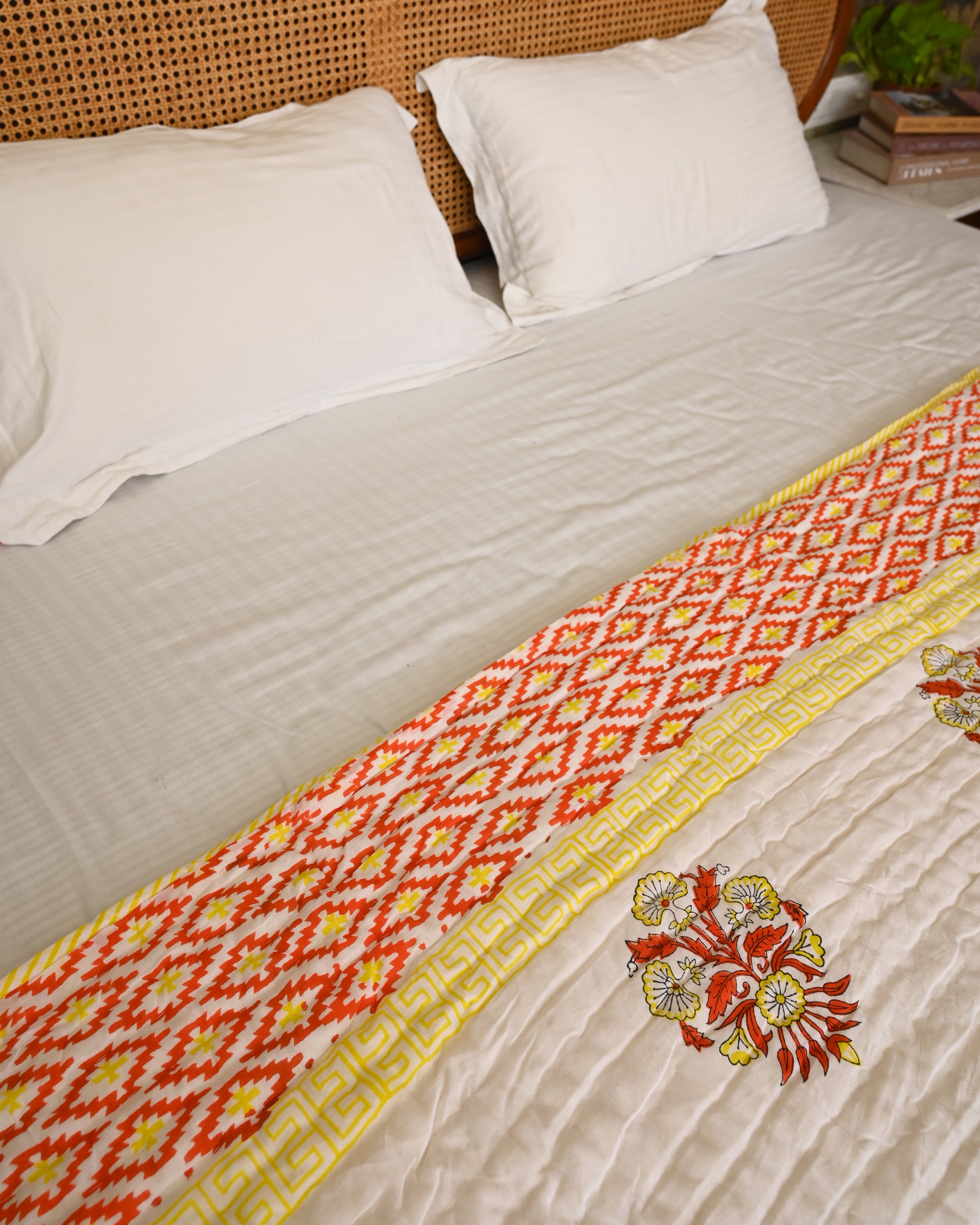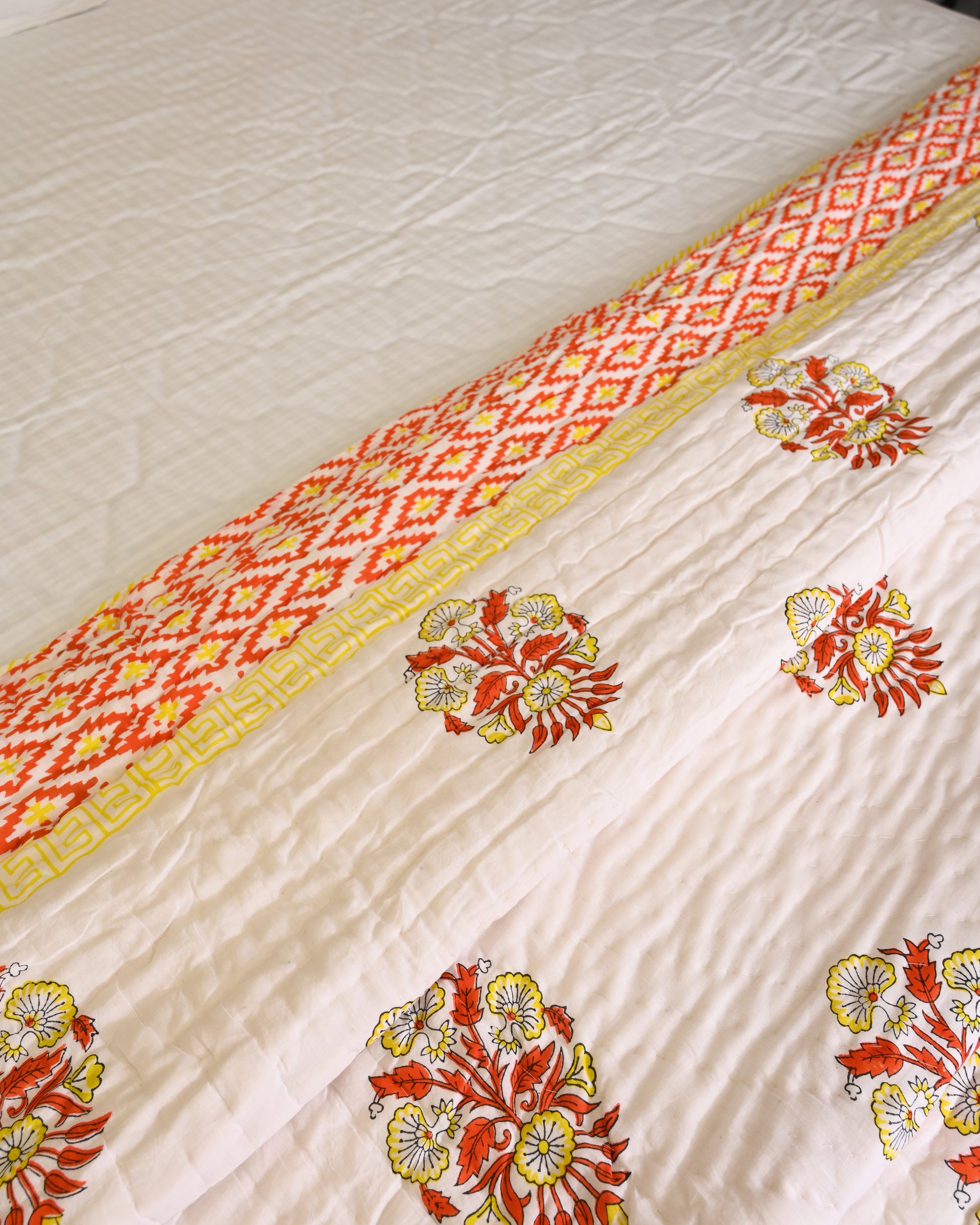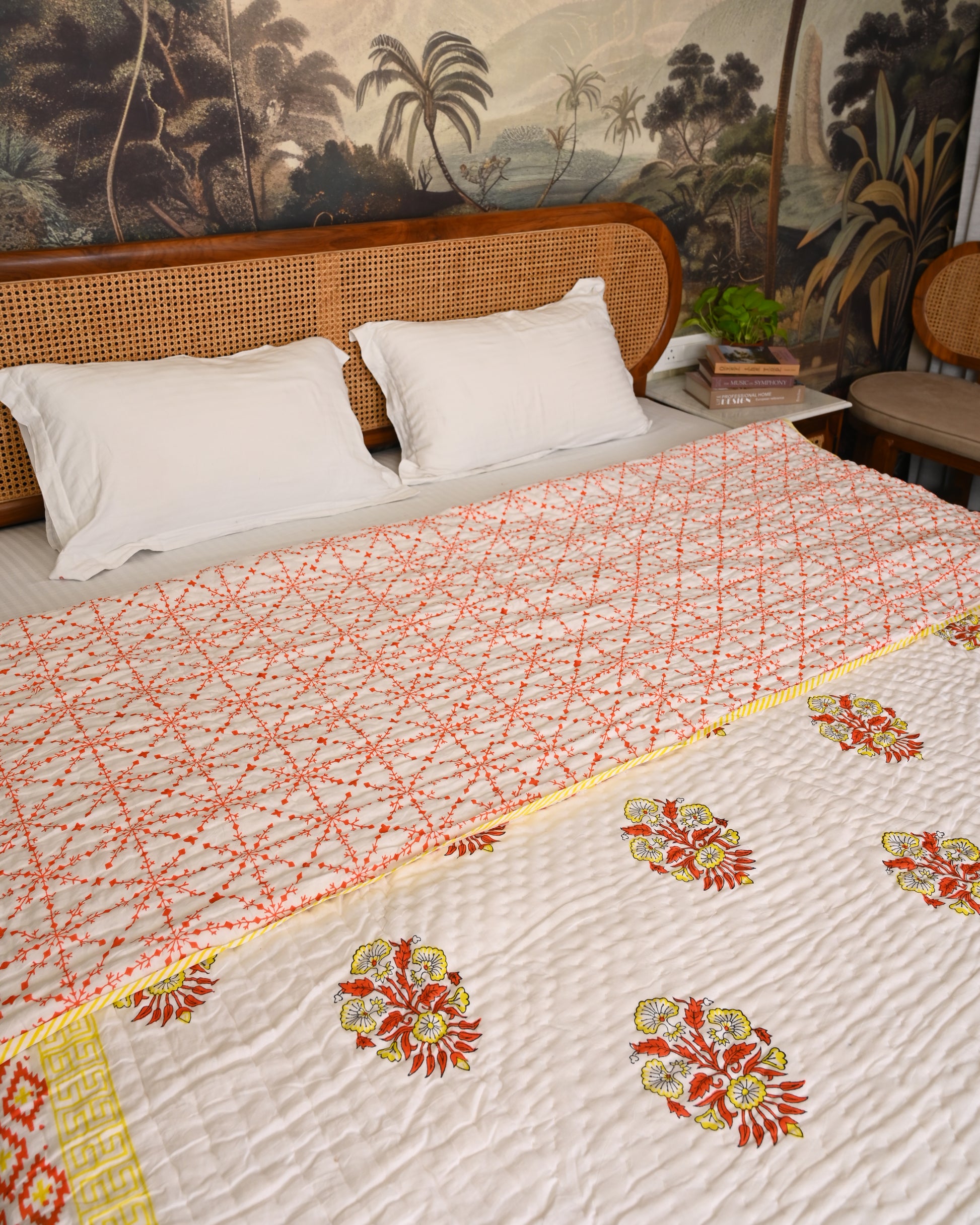 Jasmine Hand Block Printed Mulmul Cotton Quilt