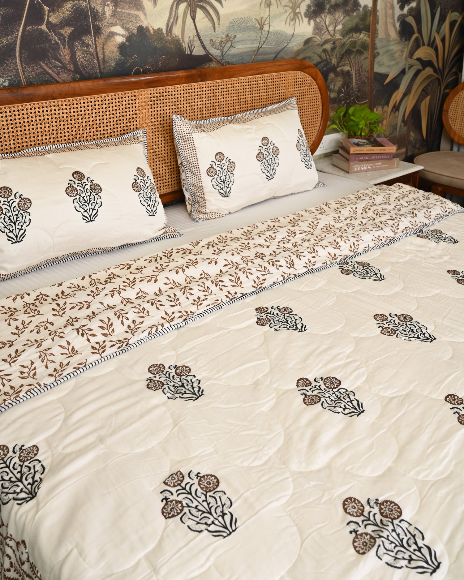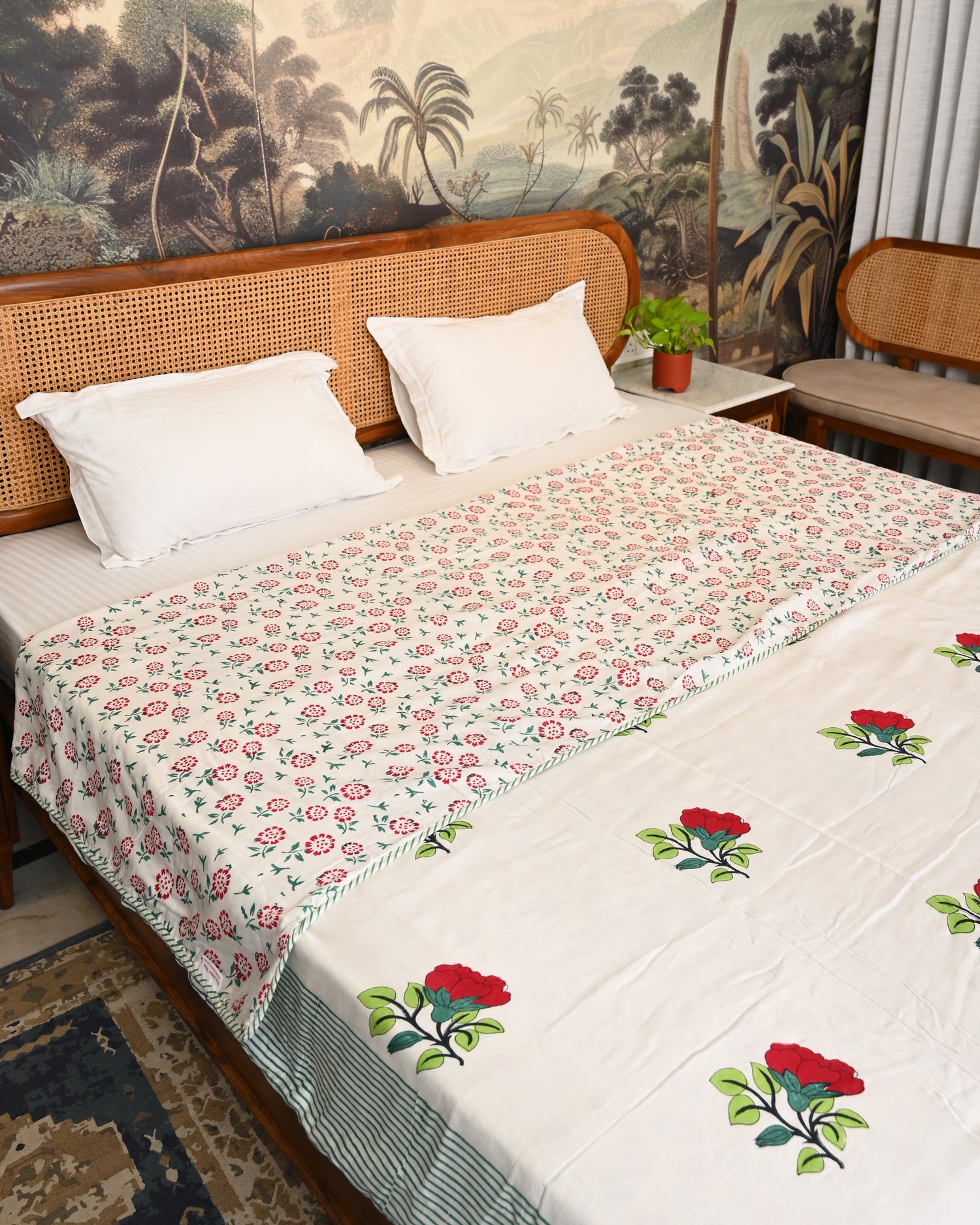 🛏️ Bichhona Hand Block Printed Quilted Bedcover Set