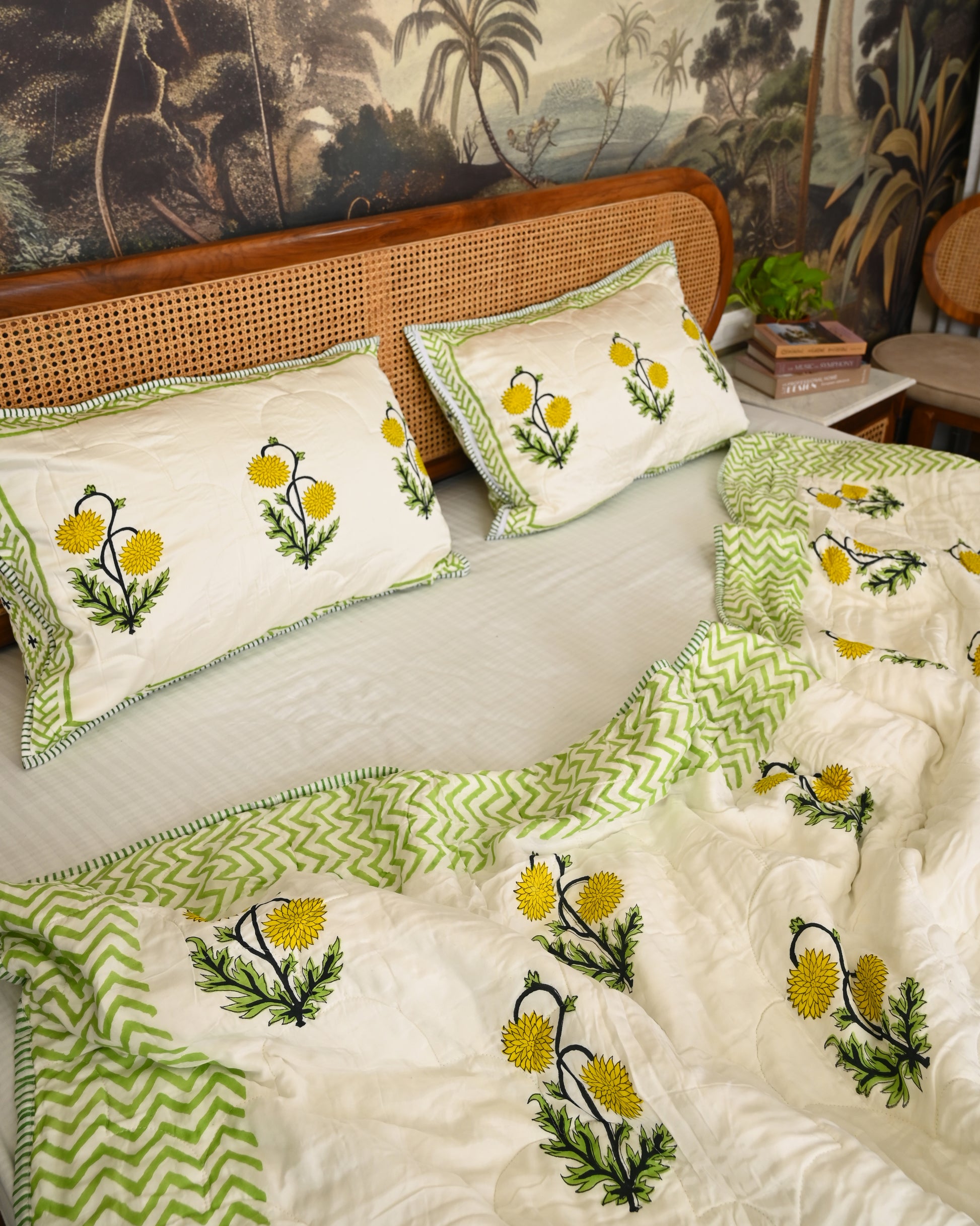 🛏️ Bichhona Hand Block Printed Quilted Bedcover Set