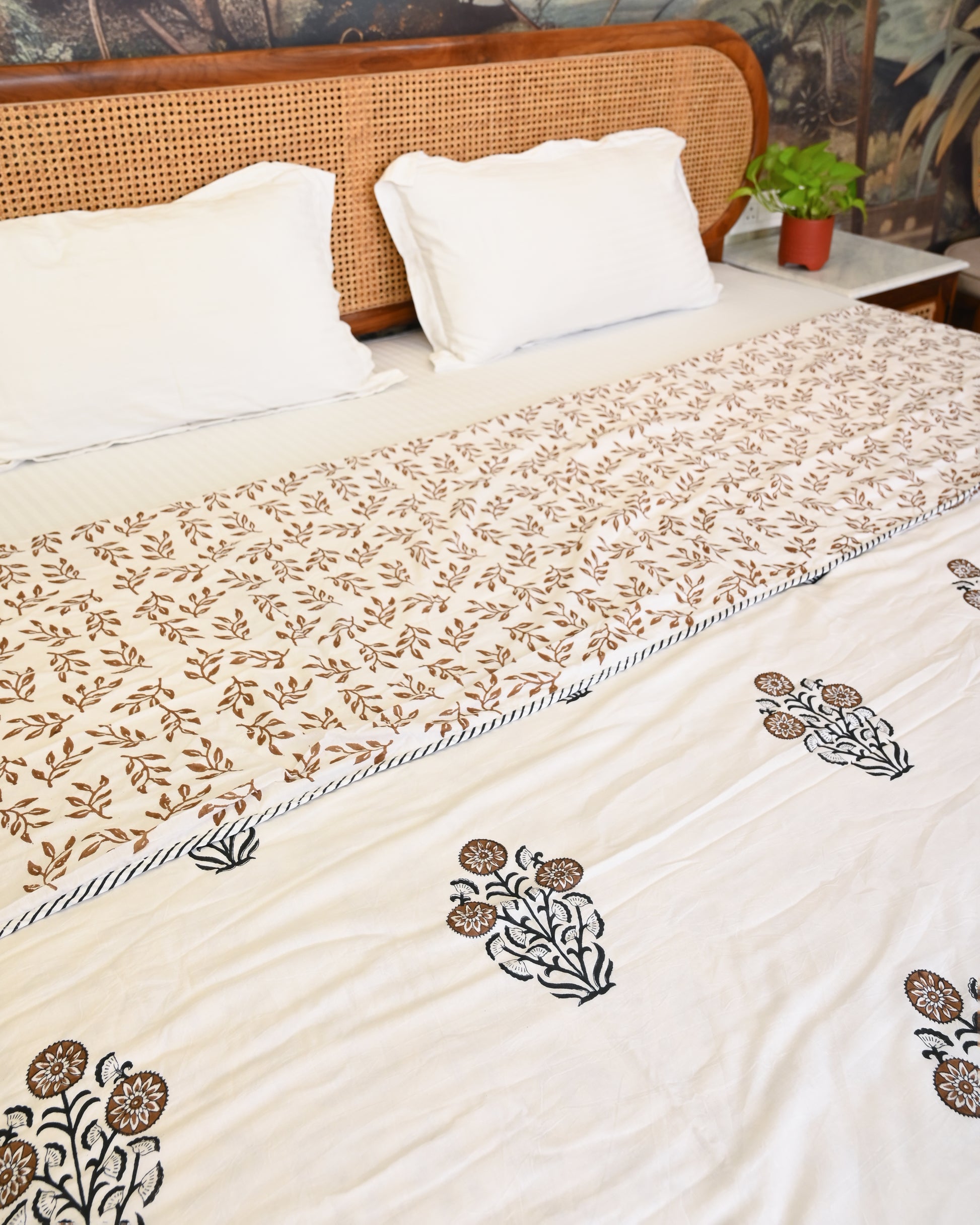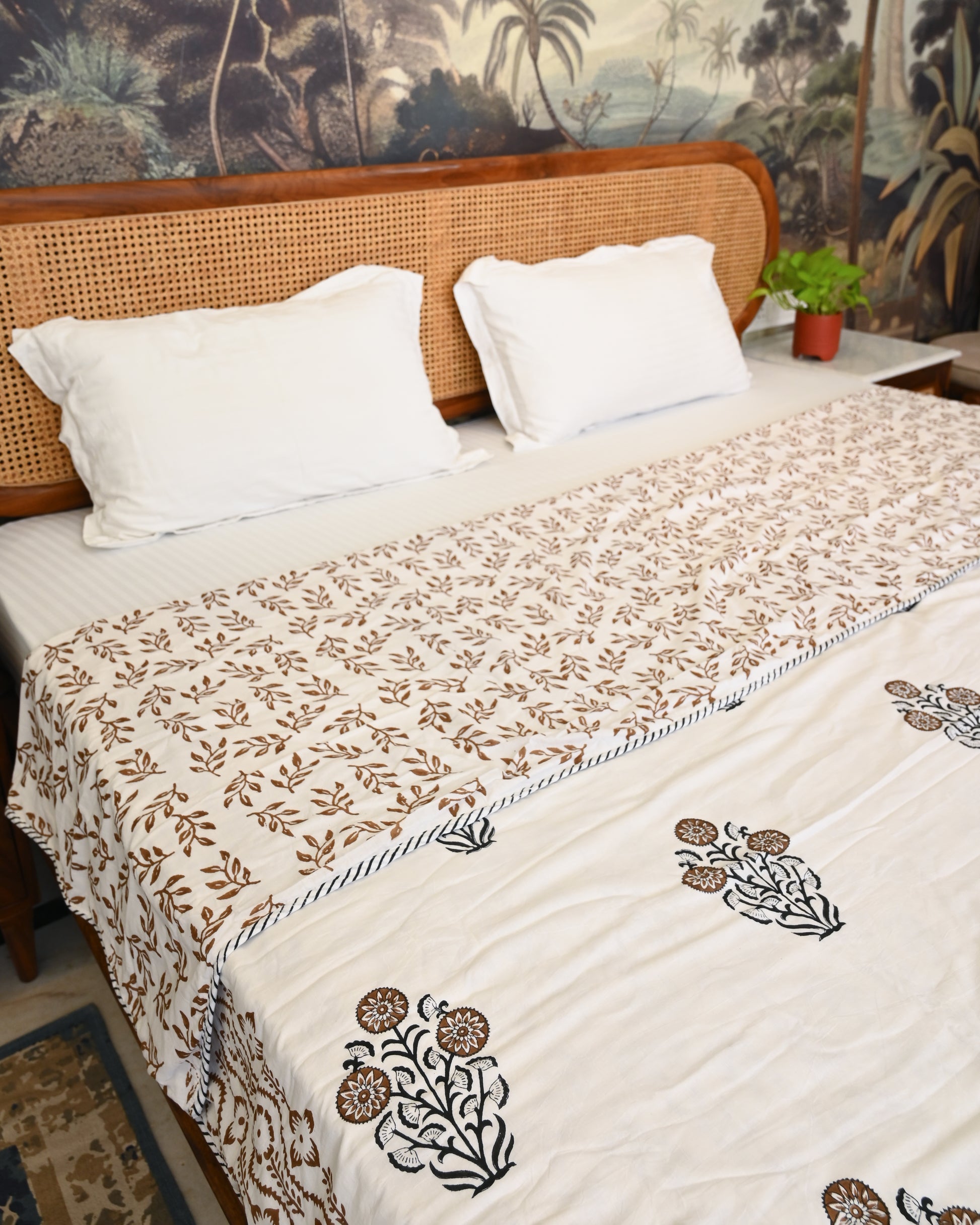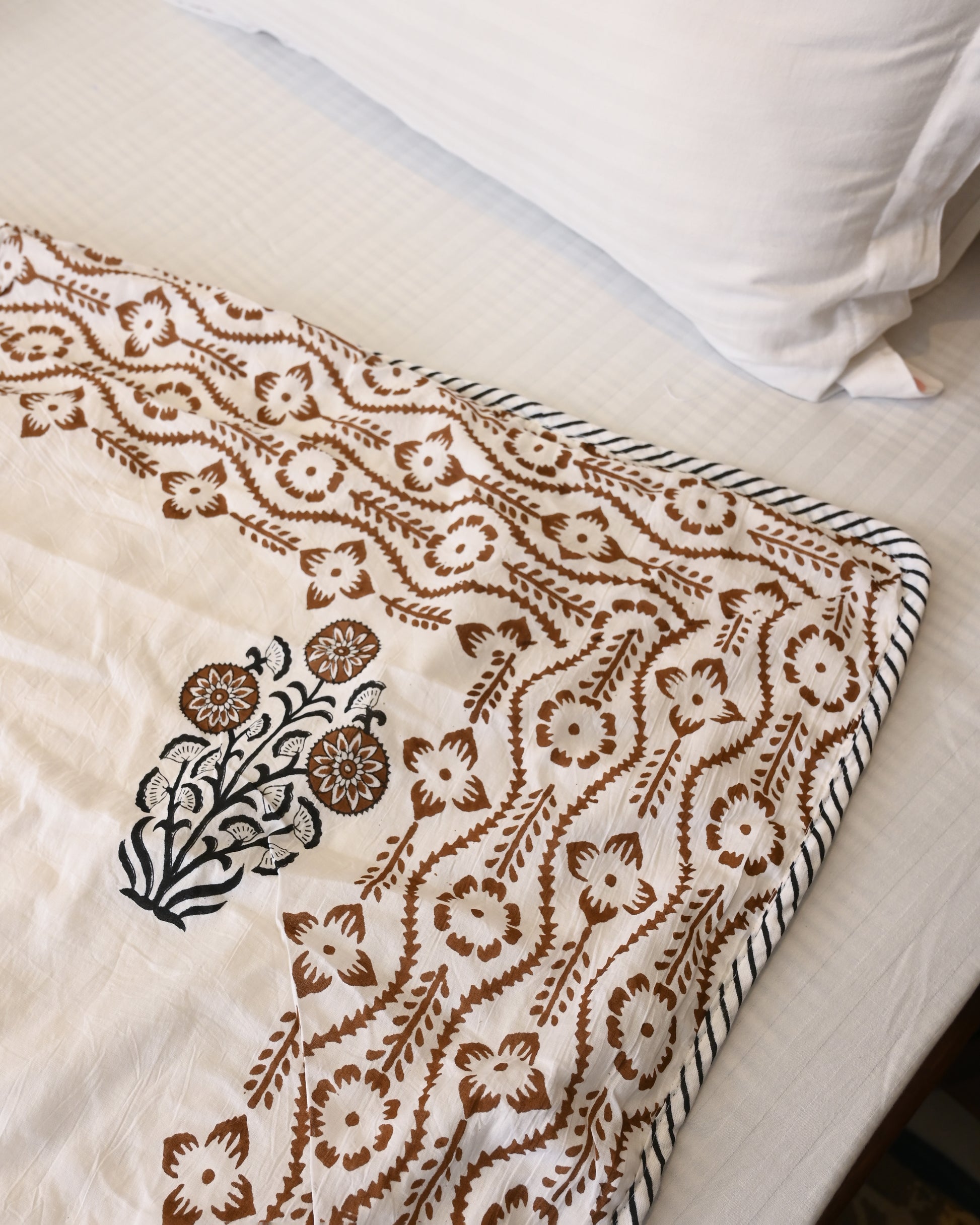 Jasmine Hand Block Printed Mulmul Cotton Quilt