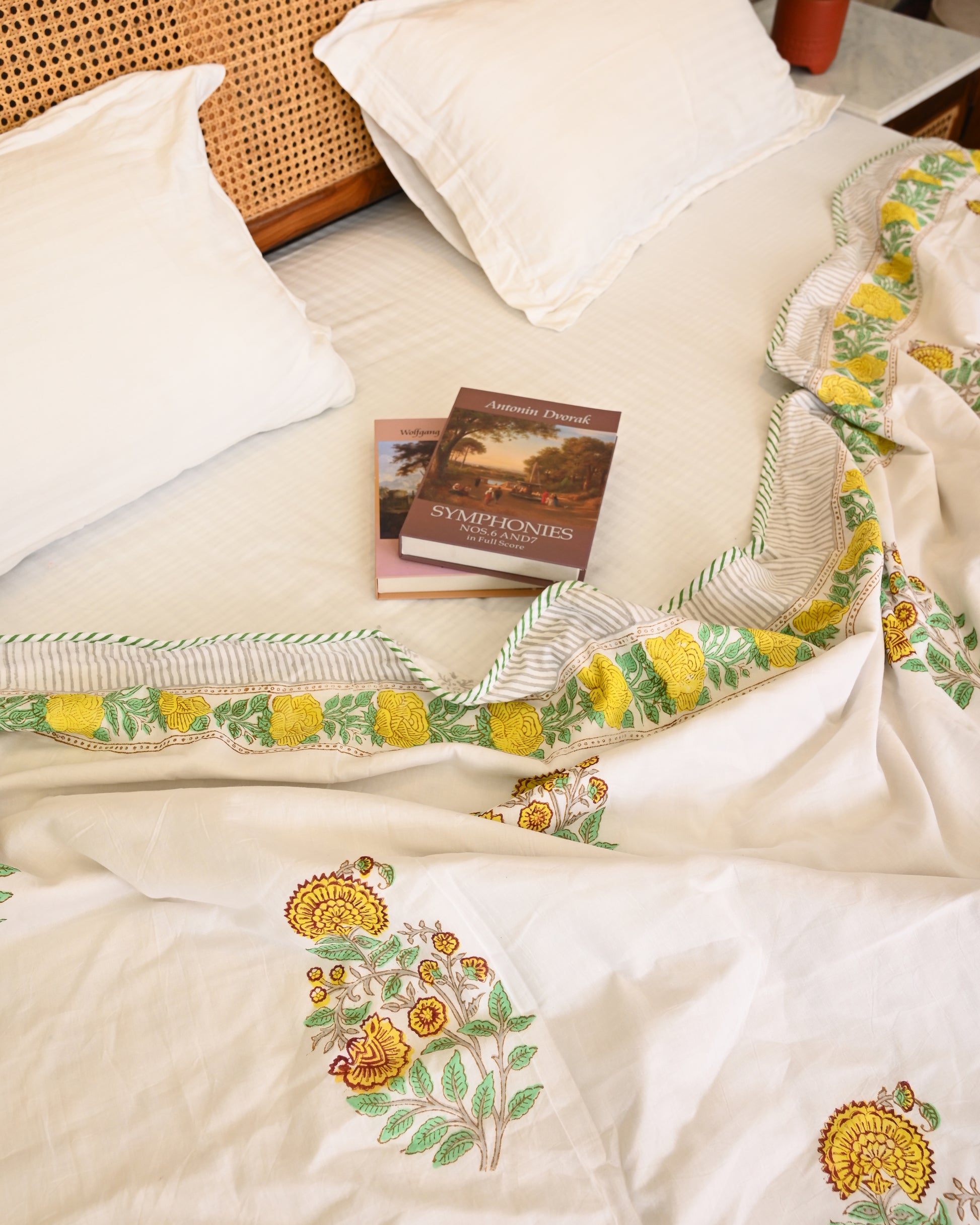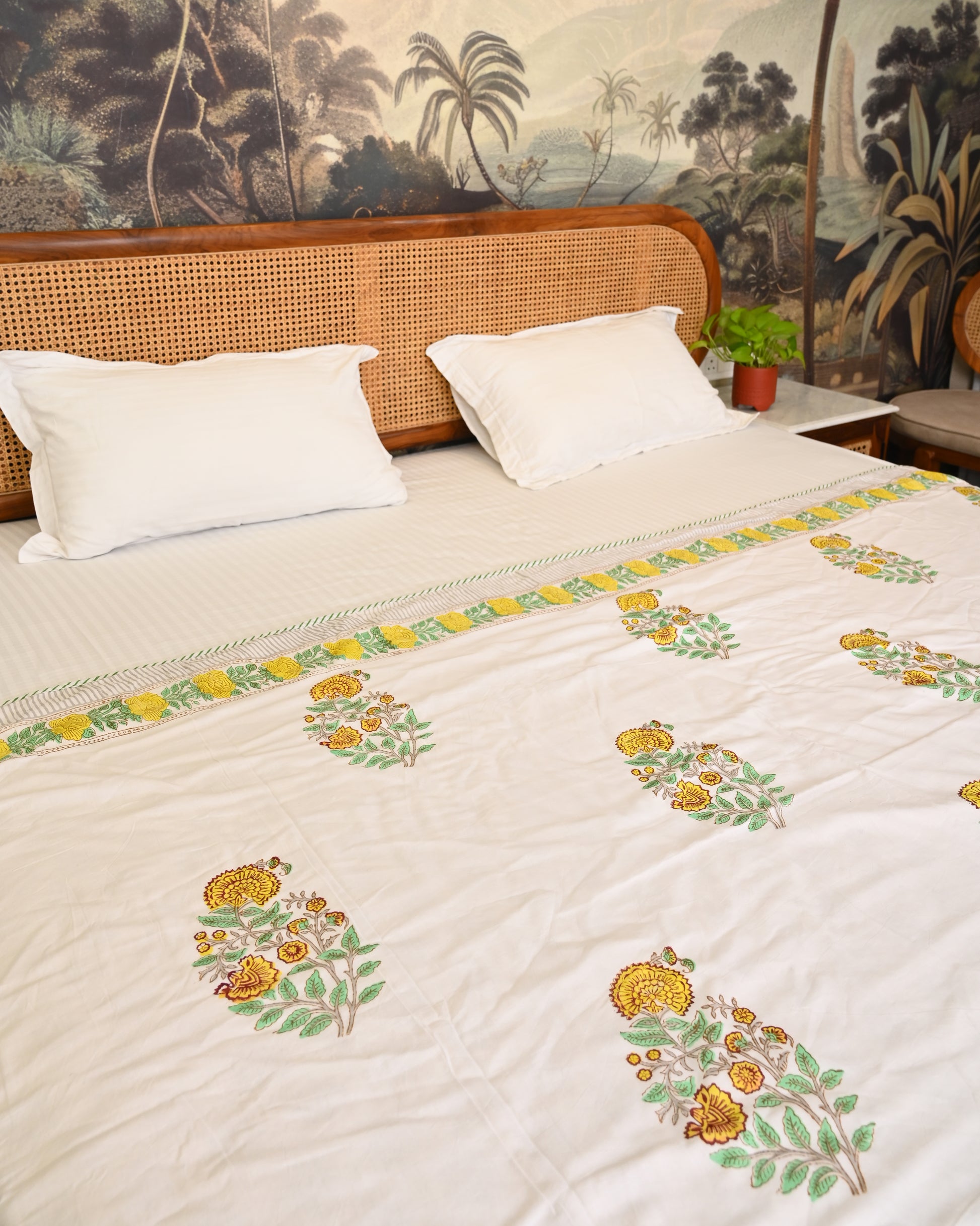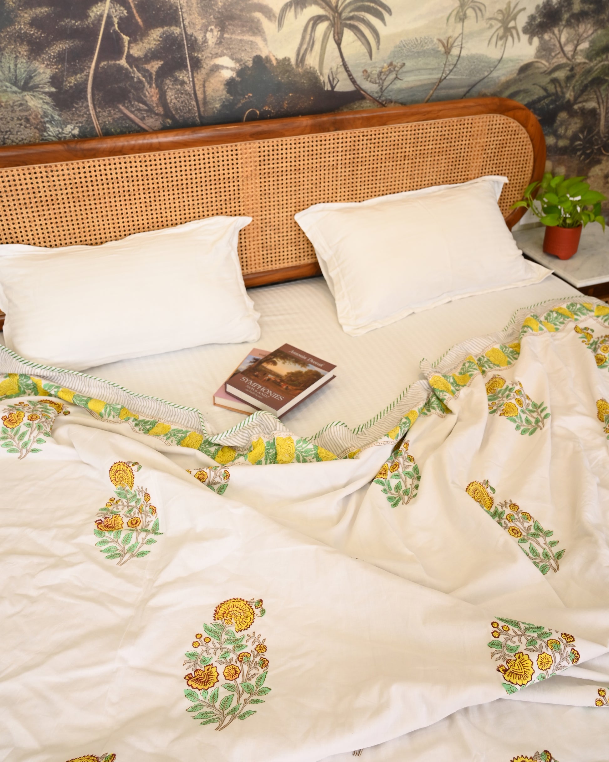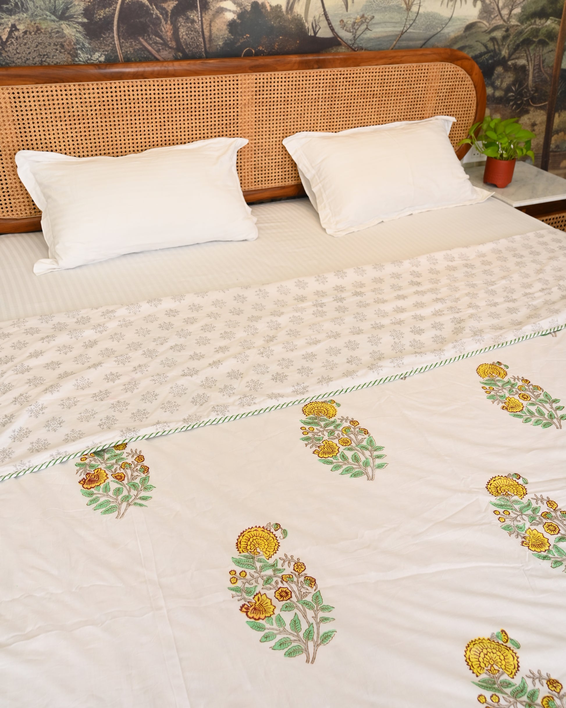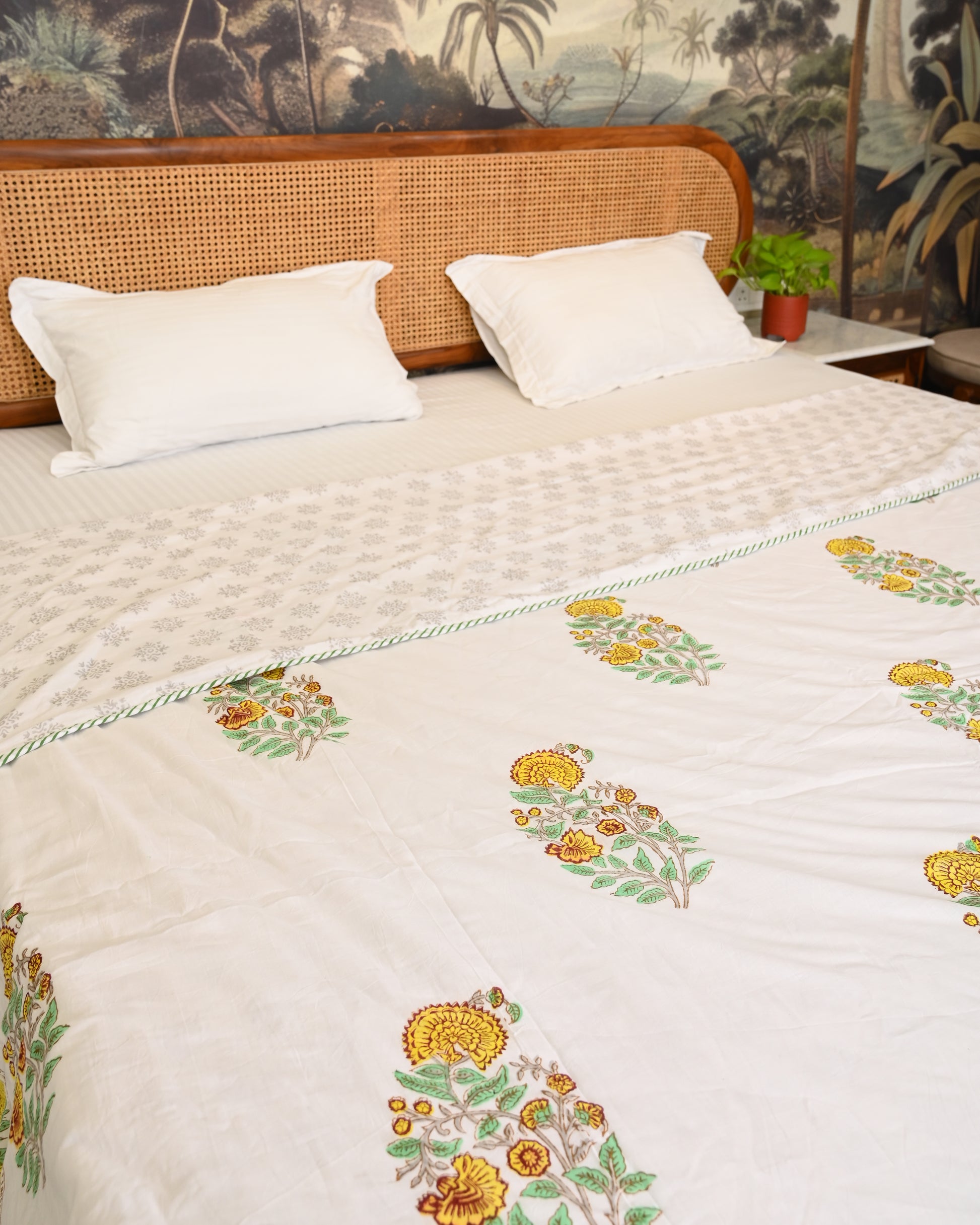 Jasmine Hand Block Printed Mulmul Cotton Quilt