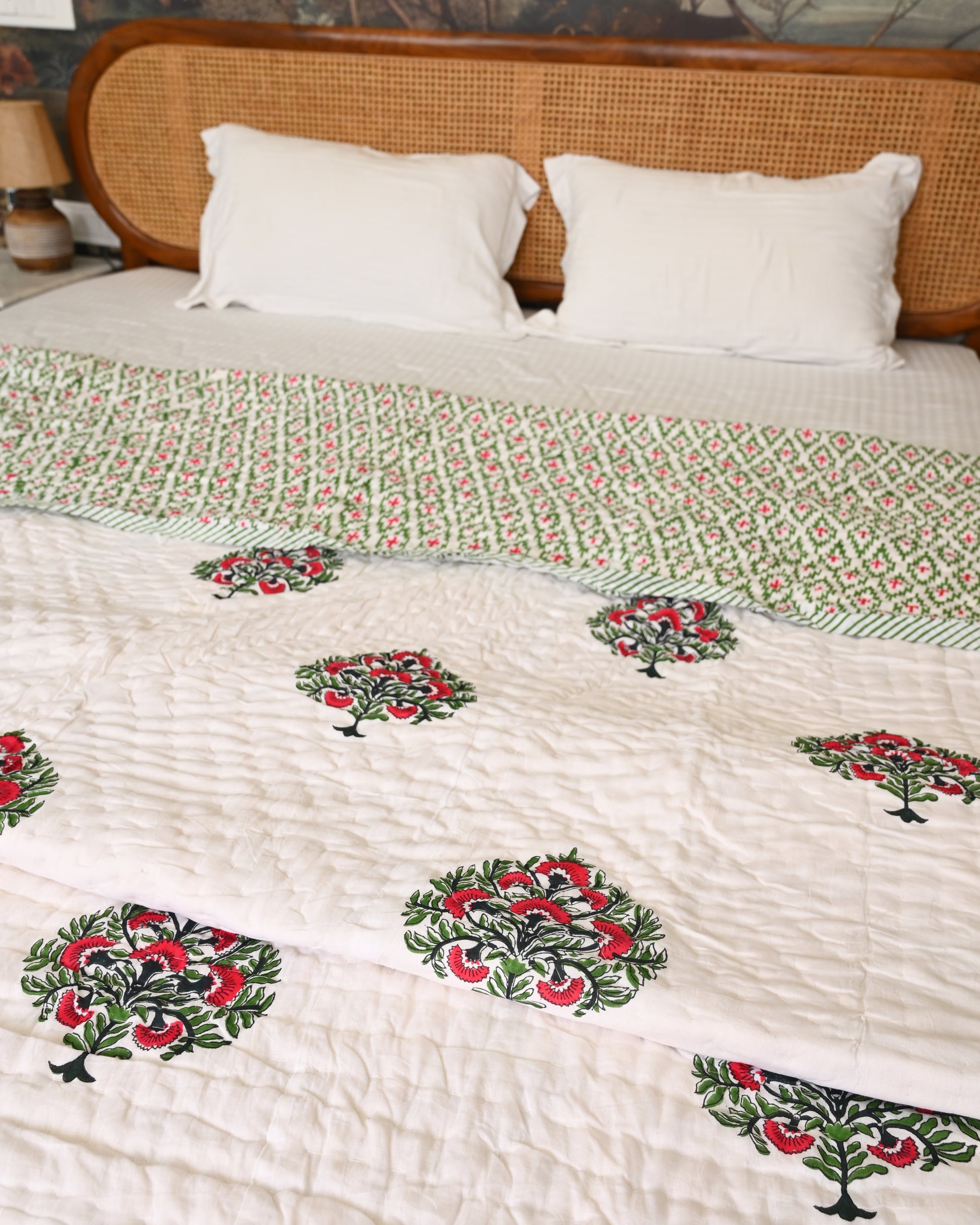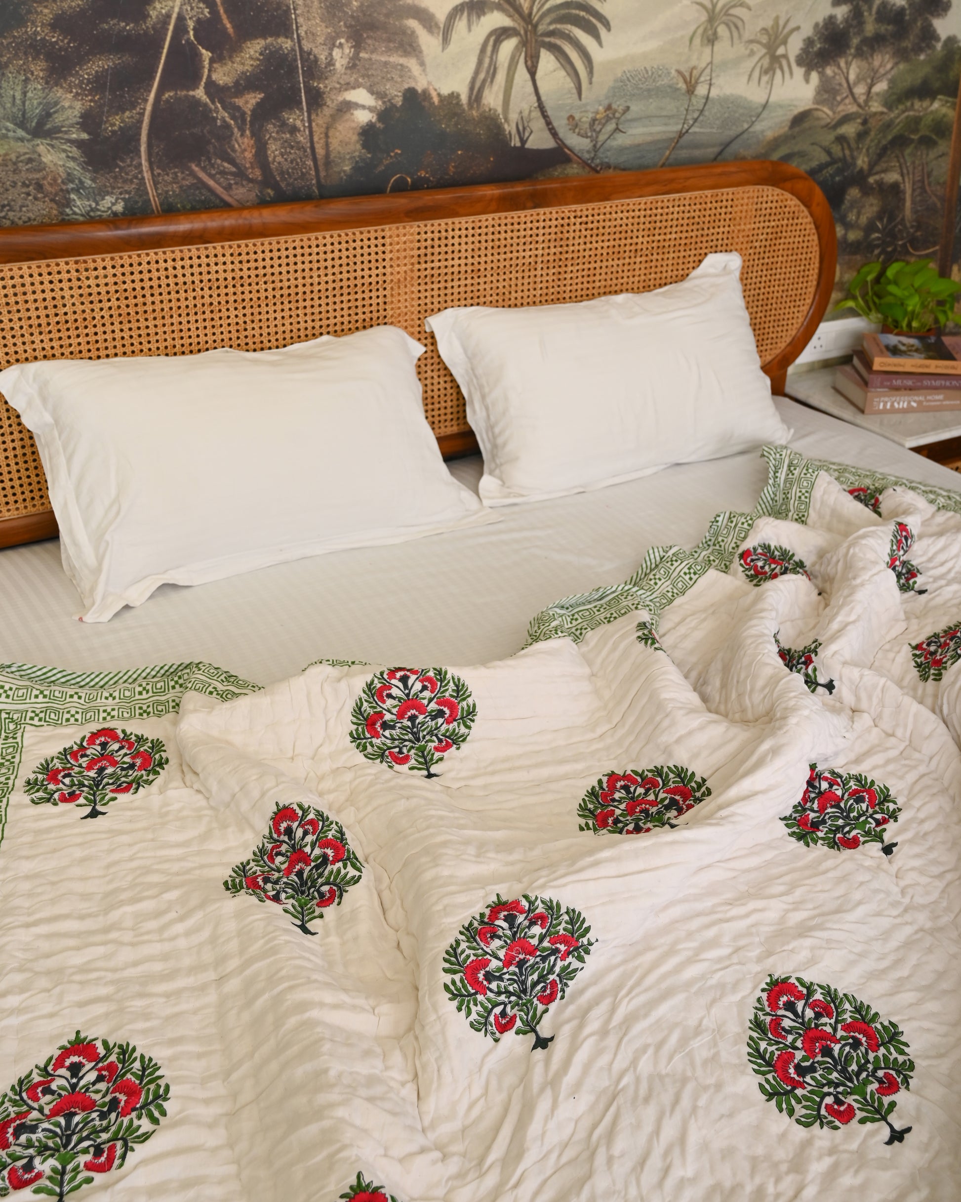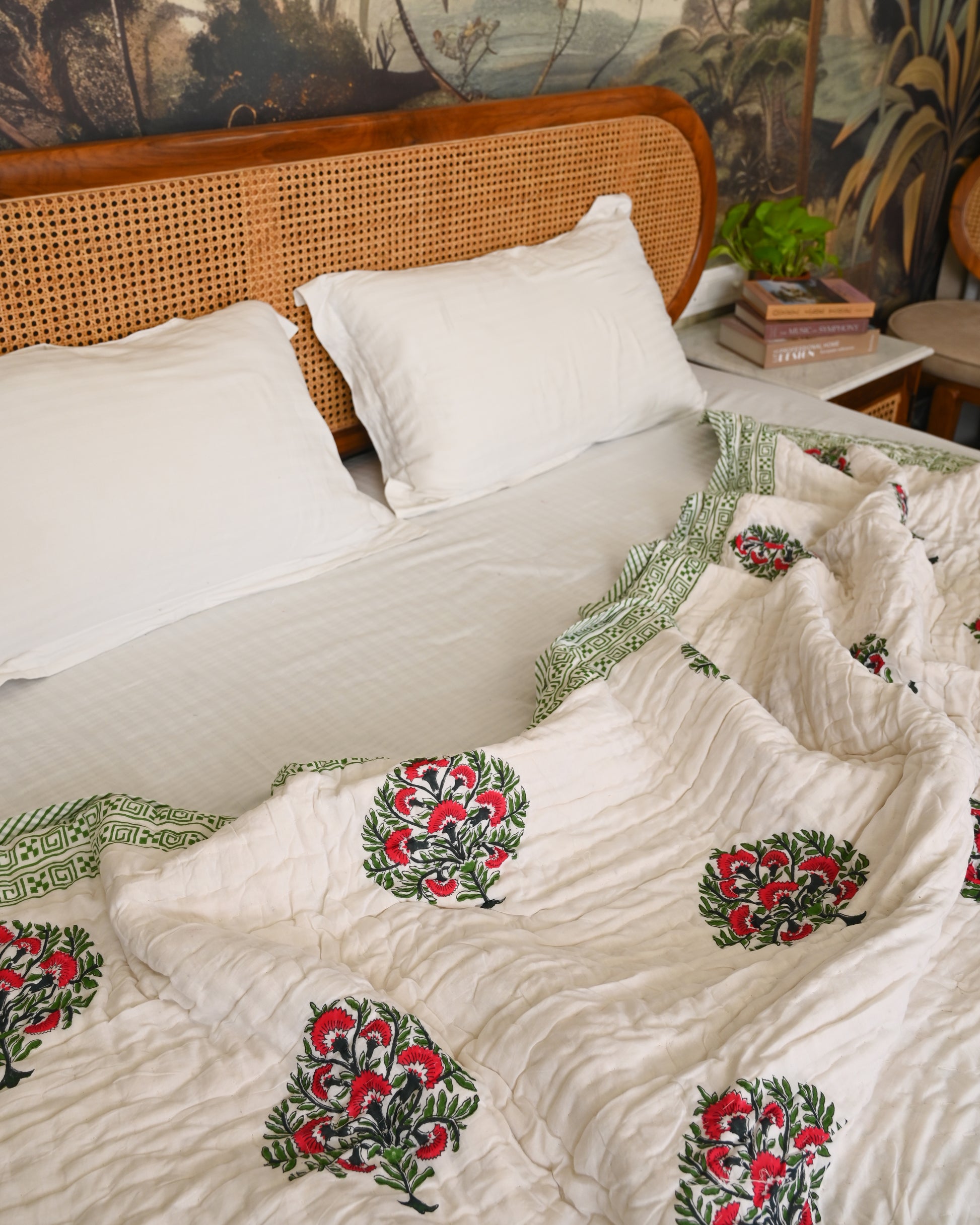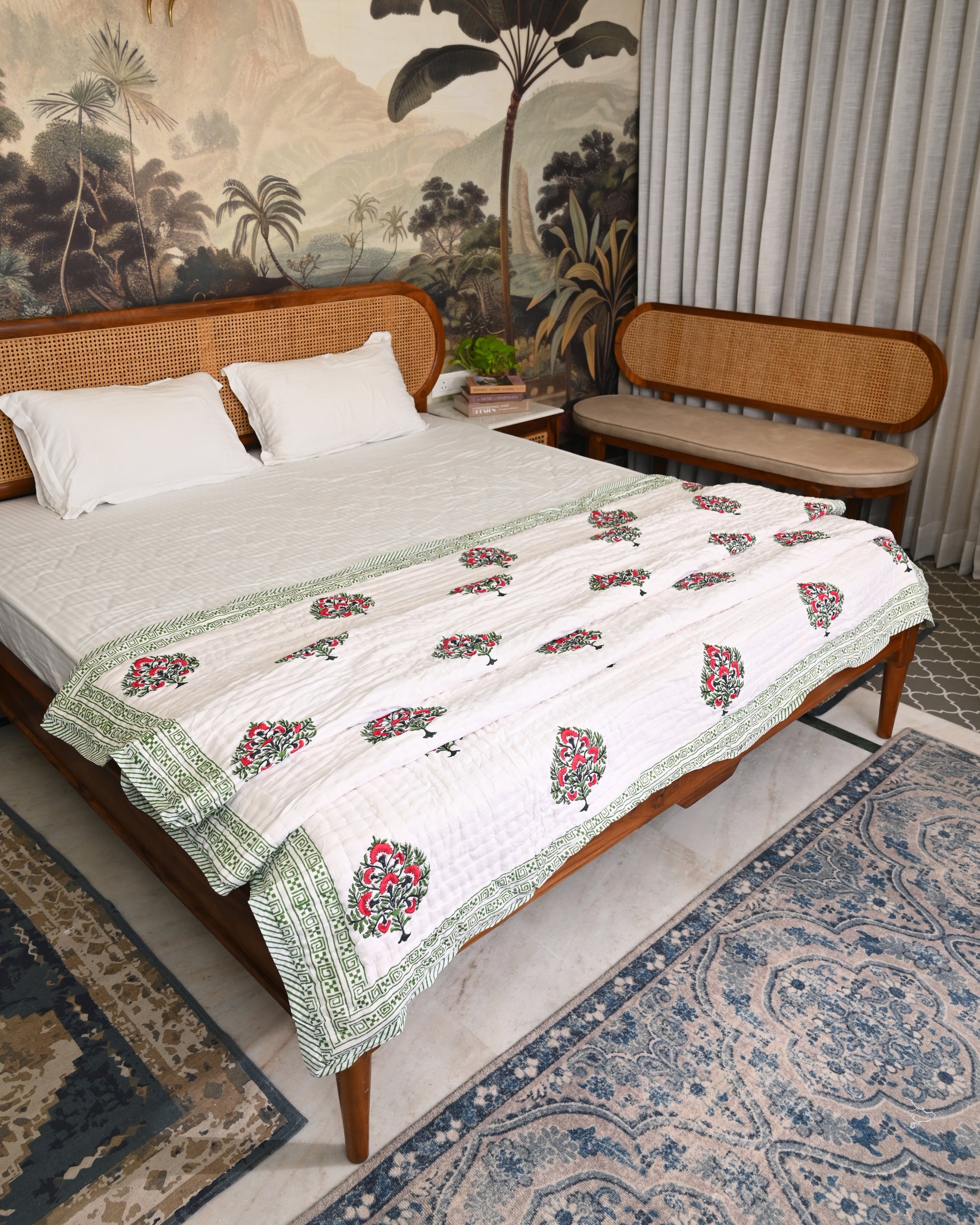 Jasmine Hand Block Printed Mulmul Cotton Quilt