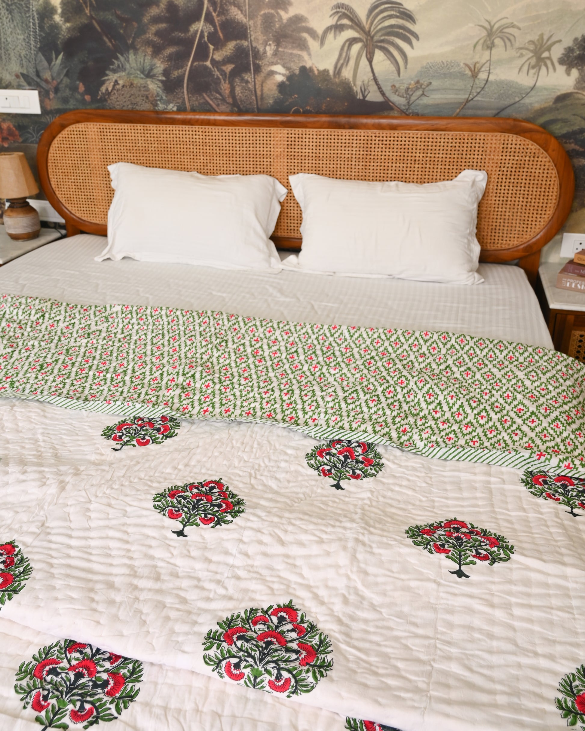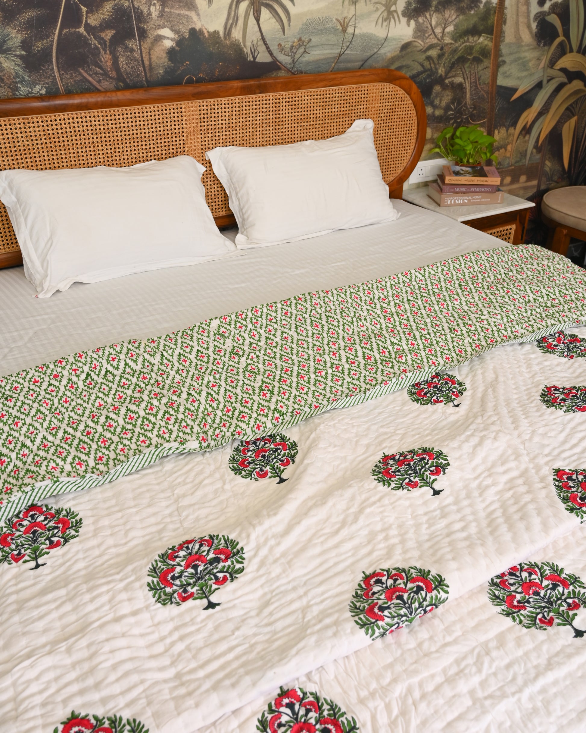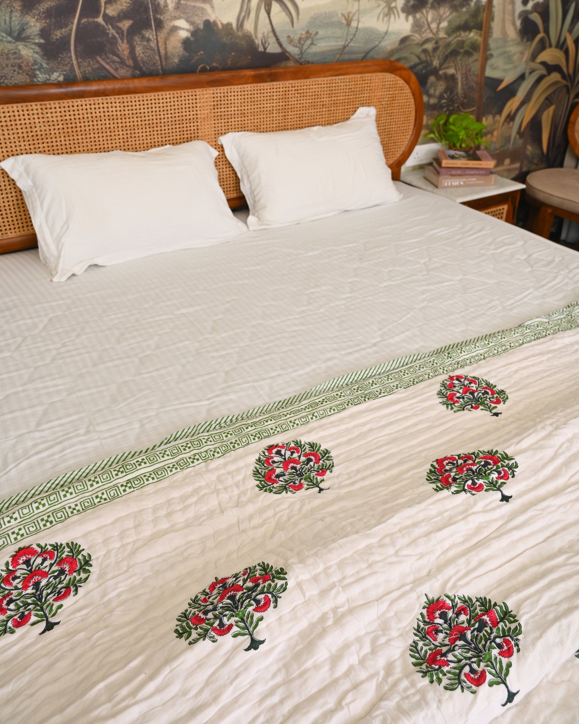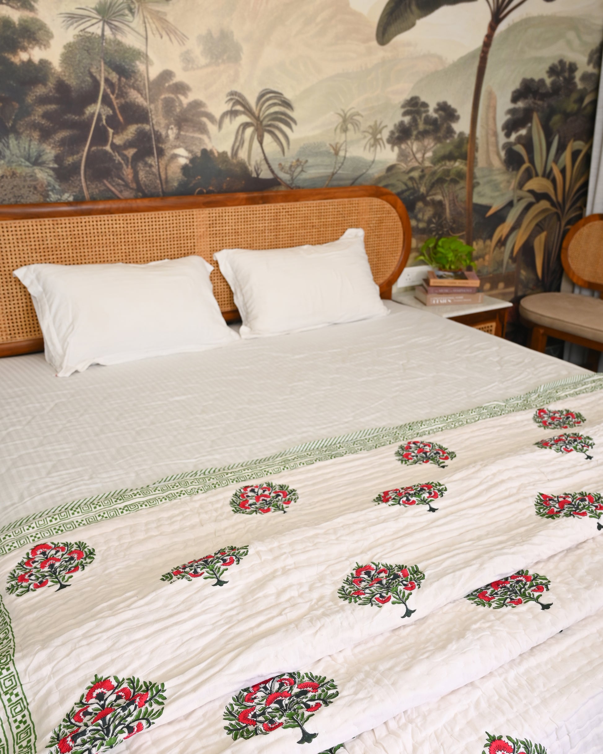 Jasmine Hand Block Printed Mulmul Cotton Quilt