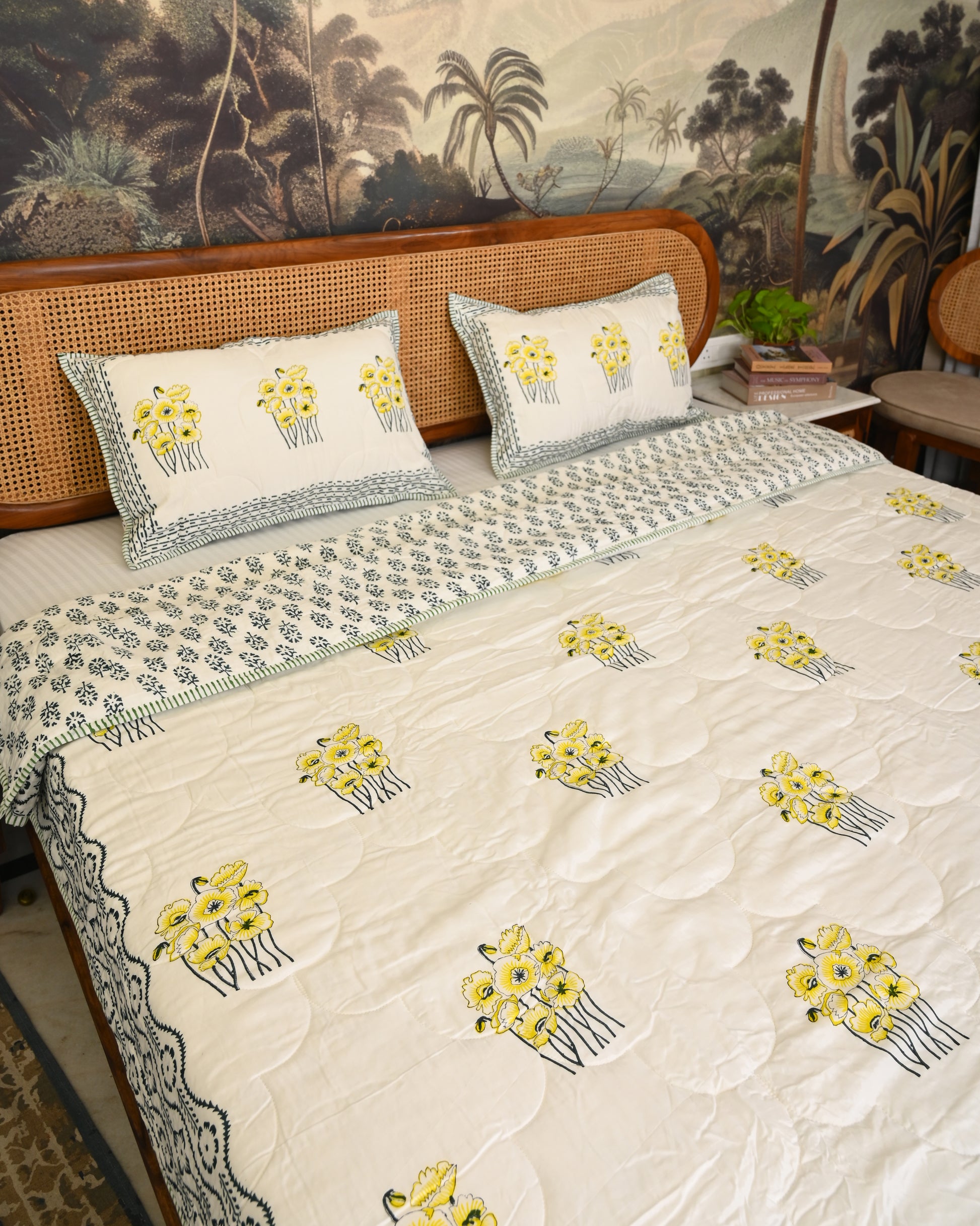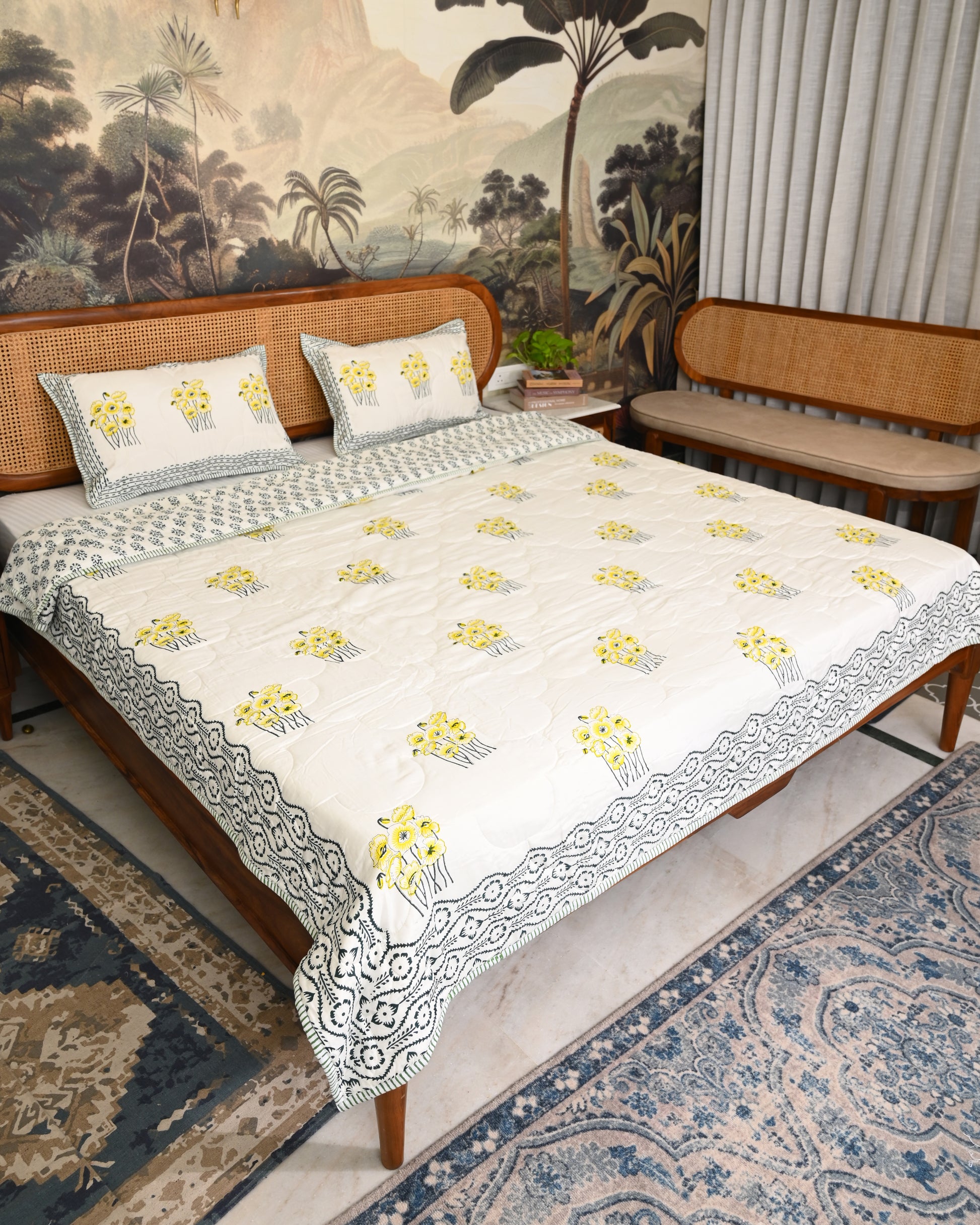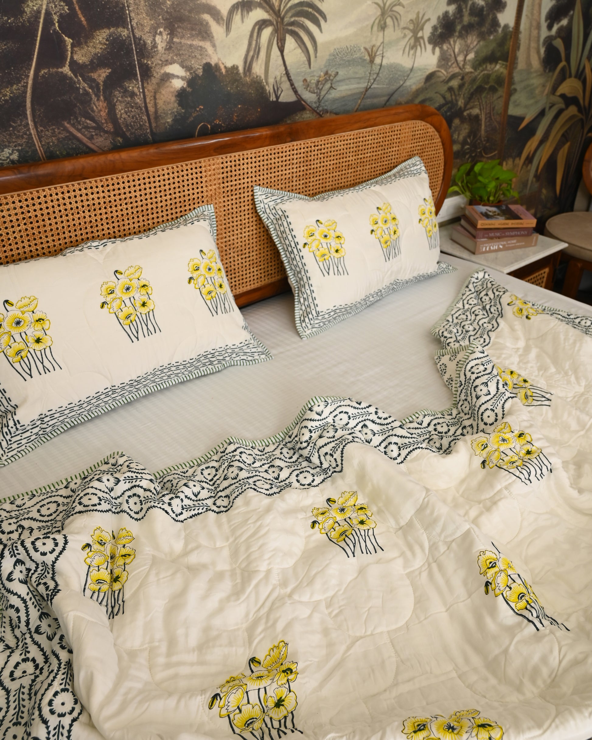Jasmine Hand Block Printed Mulmul Cotton Quilt