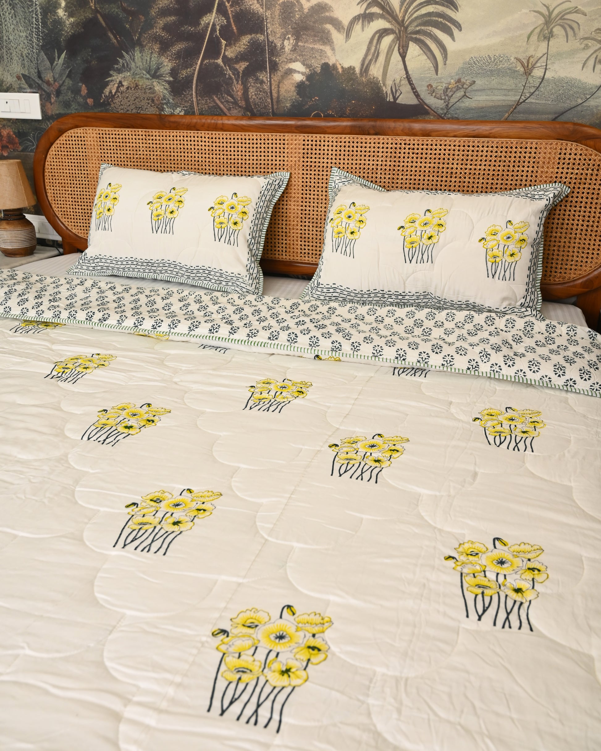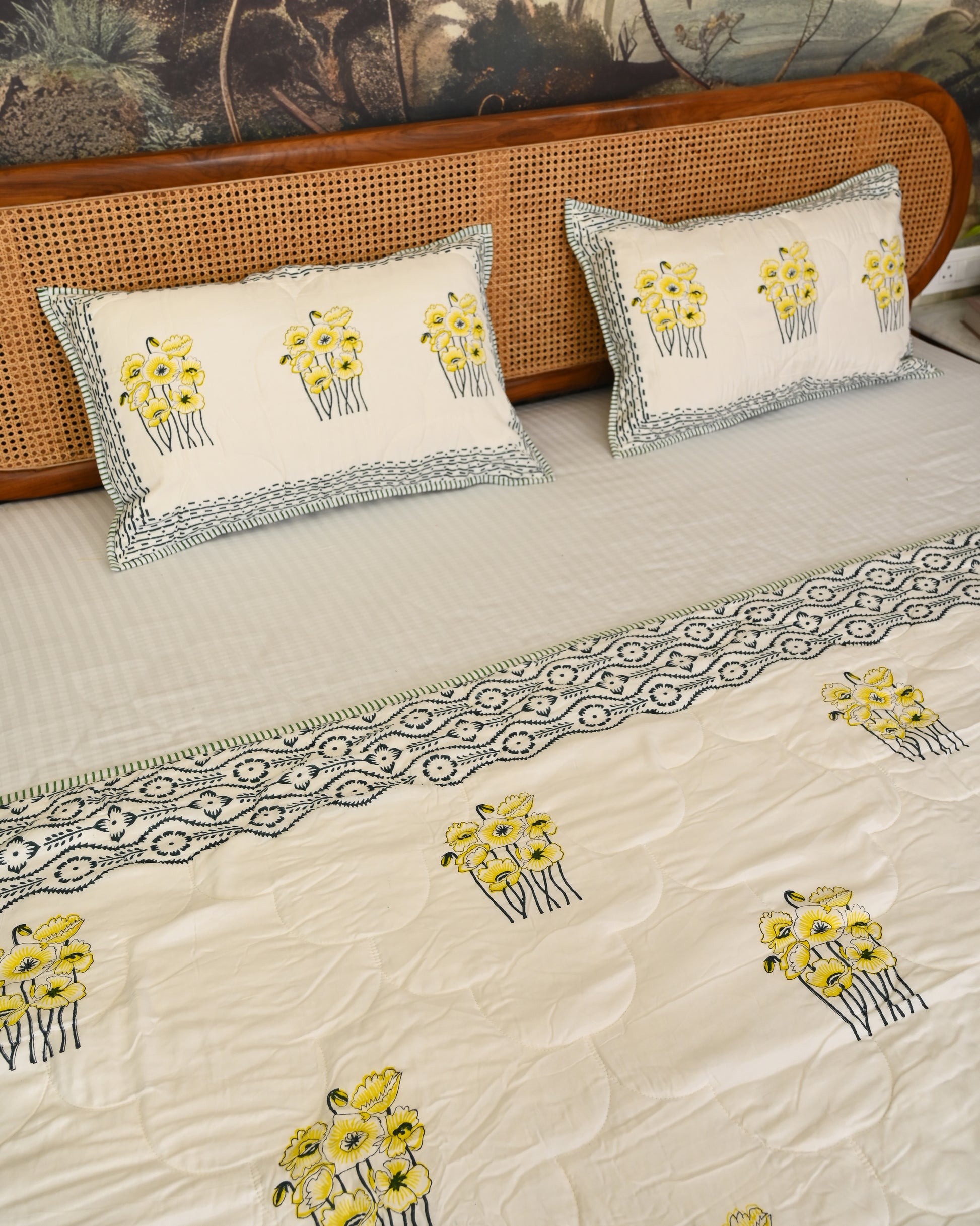 🛏️ Bichhona Hand Block Printed Quilted Bedcover Set